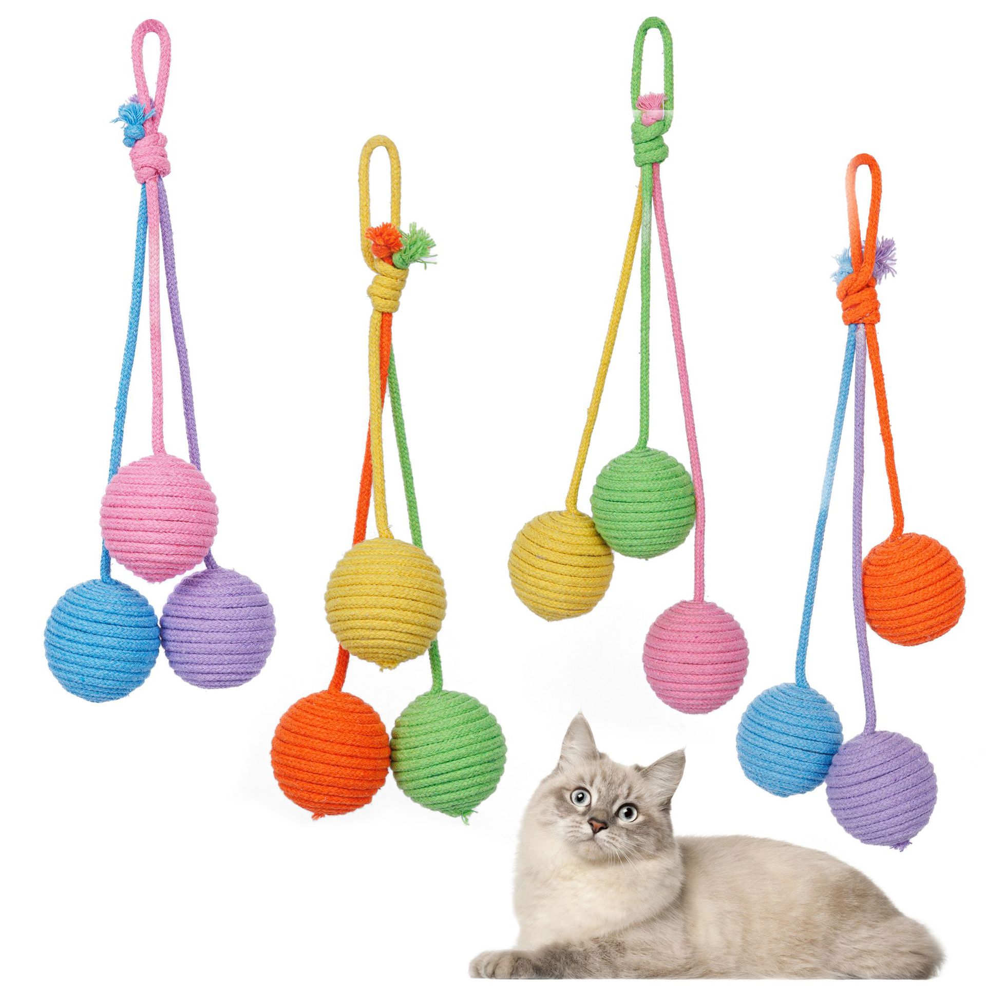 제조업체 도매 고양이는 목화 로프 볼 열 목화 로프 볼 물린 방지 어금니 고양이 장난감을 걸 수 있습니다스토어 가기