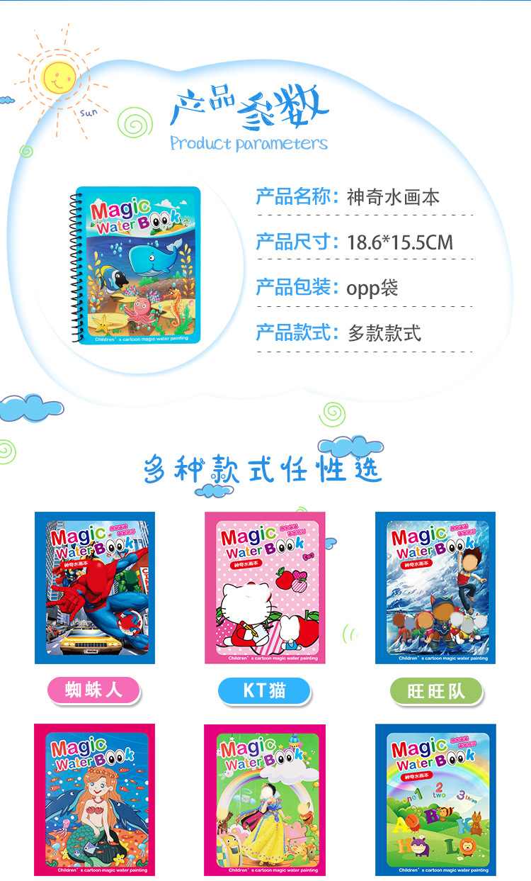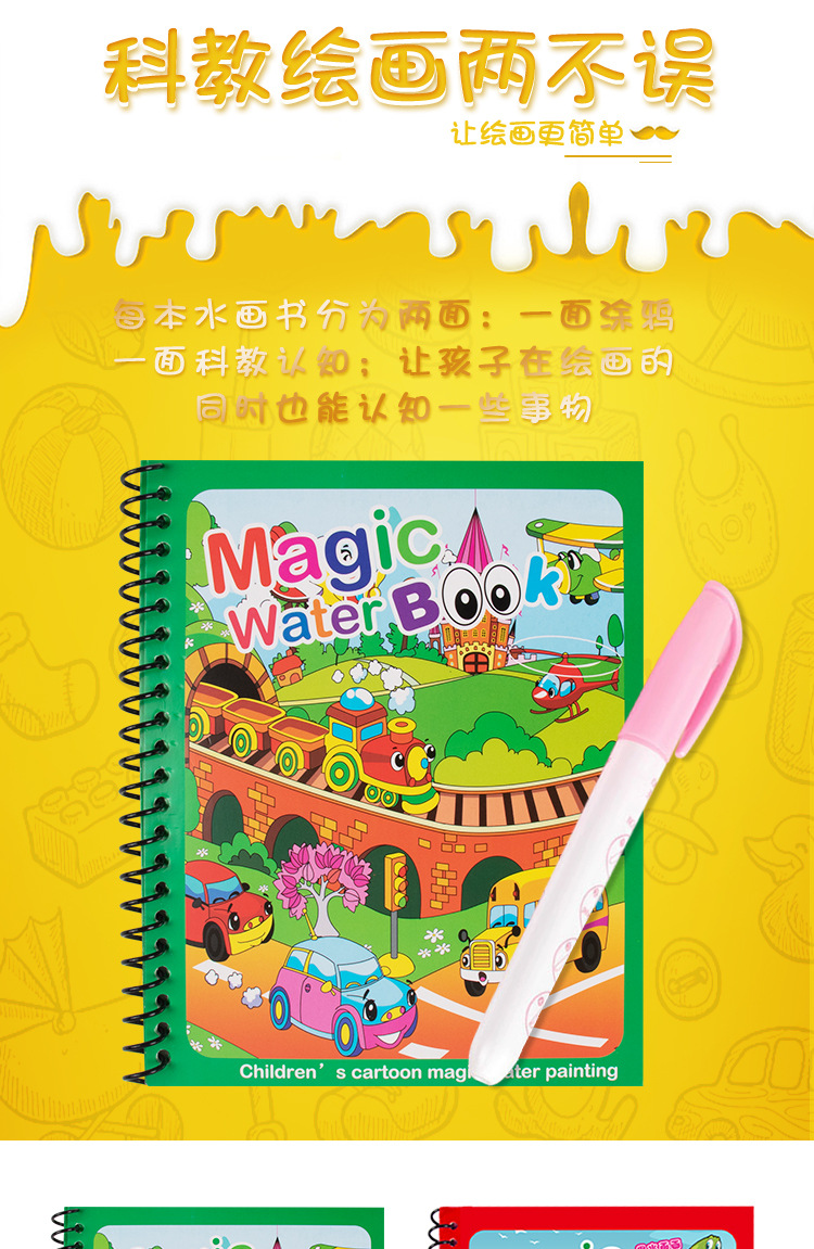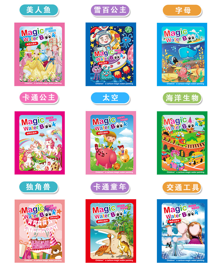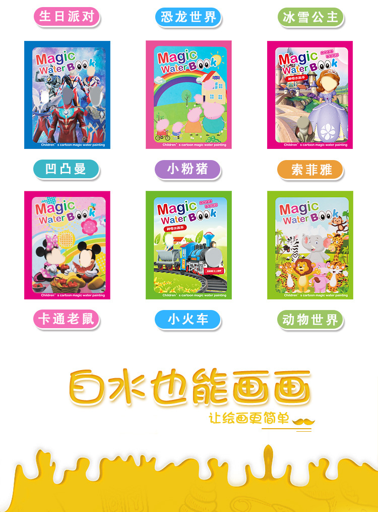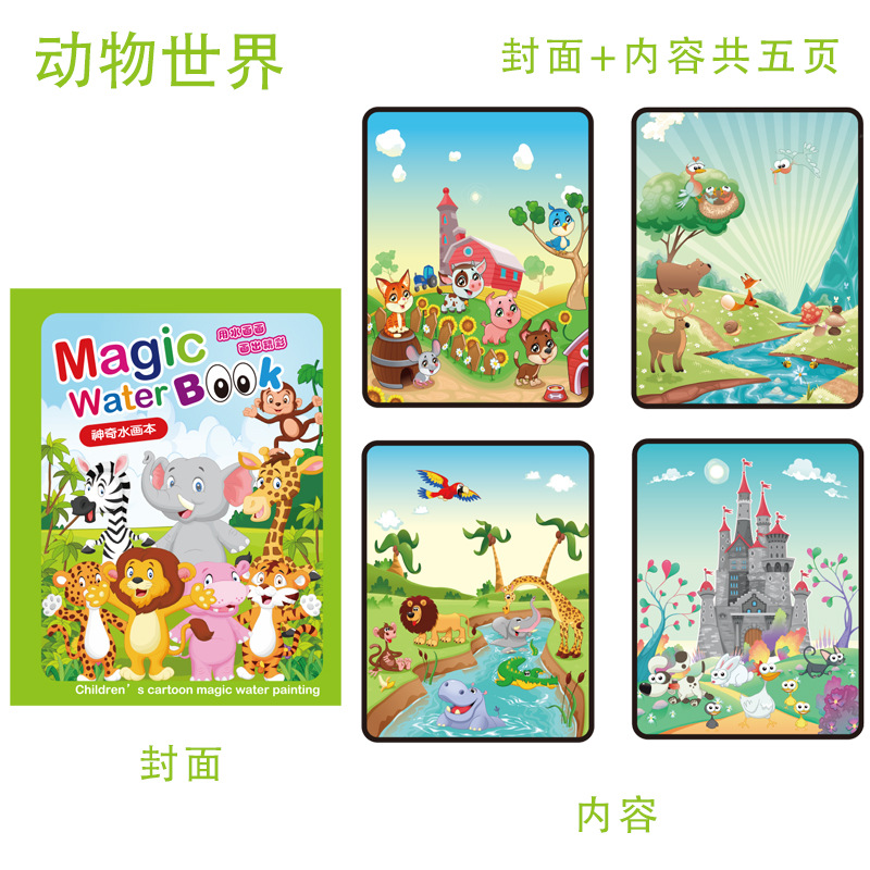 어린이용 화판 물그림책 흰색 카드지 마법 그림 세트 아기 그림 교육용 반복 색칠 물감 장난감스토어 가기