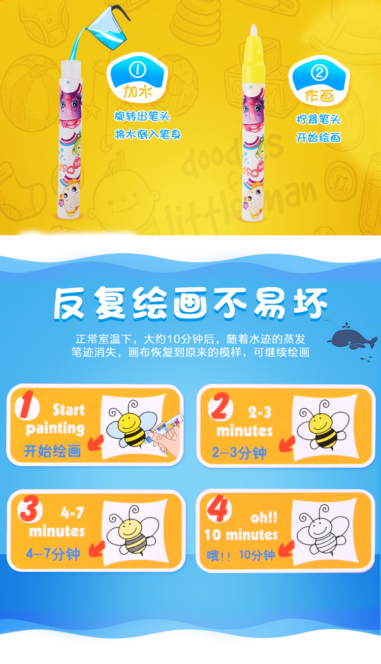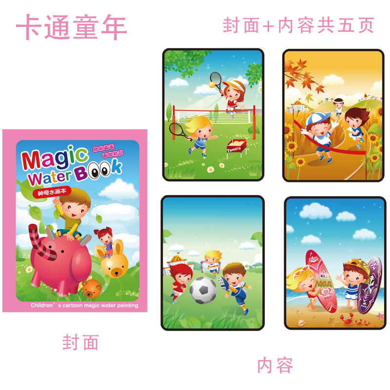 어린이용 화판 물그림책 흰색 카드지 마법 그림 세트 아기 그림 교육용 반복 색칠 물감 장난감
