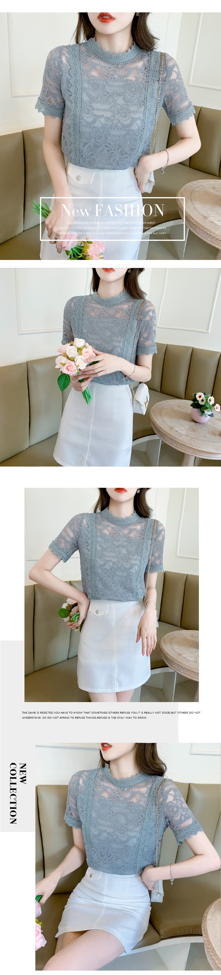리얼 샷 2023 여름 새로운 패션 우아한 무스 빈 레이스 셔츠 여성의 세련된 쉬폰 탑스토어 가기