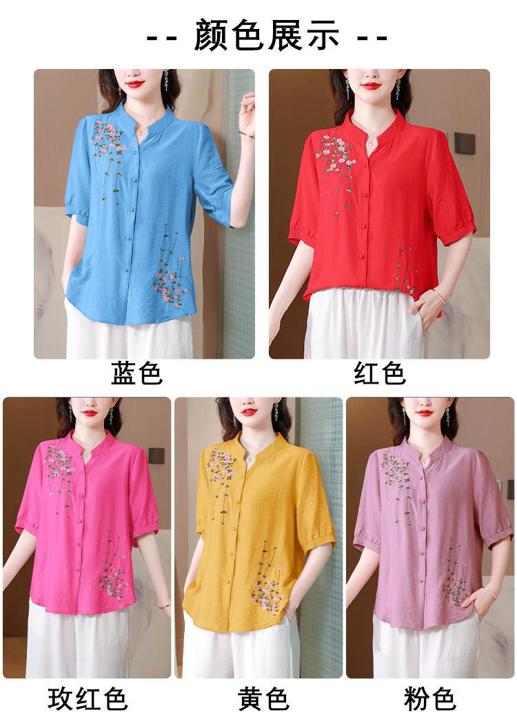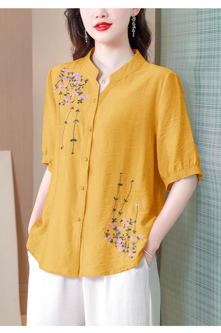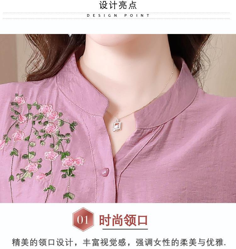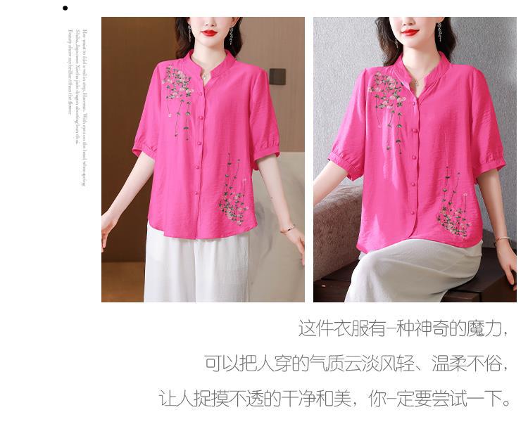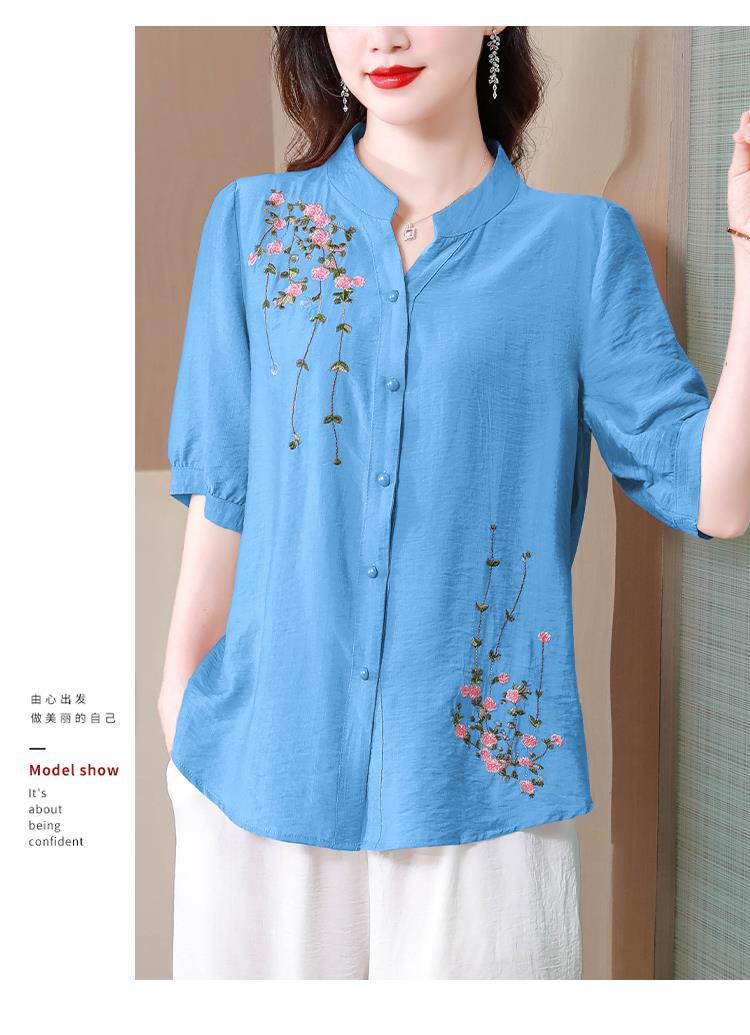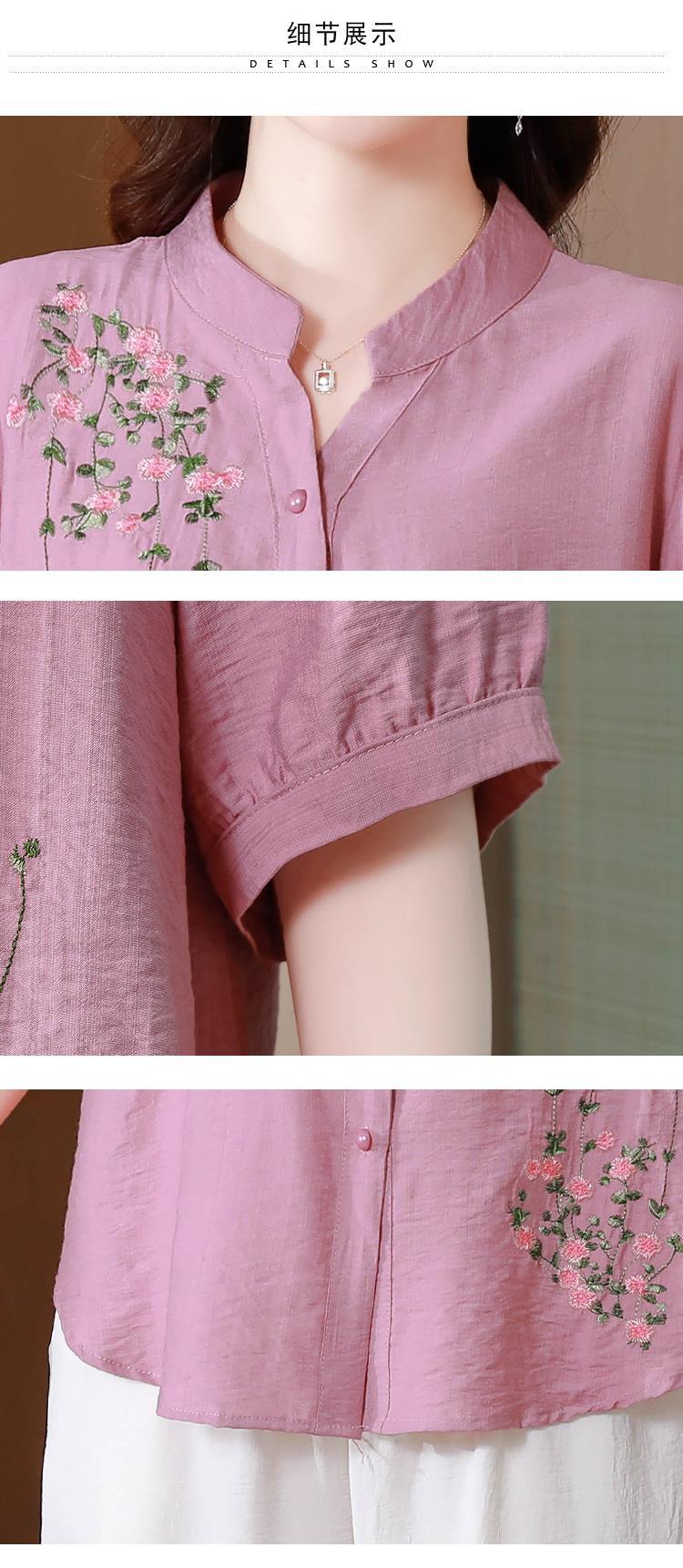 2023 여름 자수 셔츠 여성의 새로운 반팔 면과 린넨 탑 루즈한 플러스 사이즈 캐주얼 여성의 작은 셔츠스토어 가기