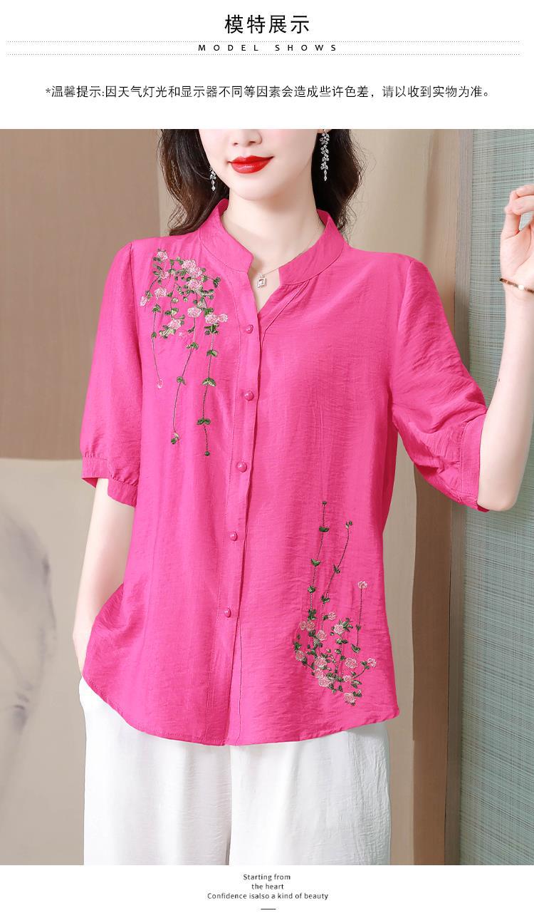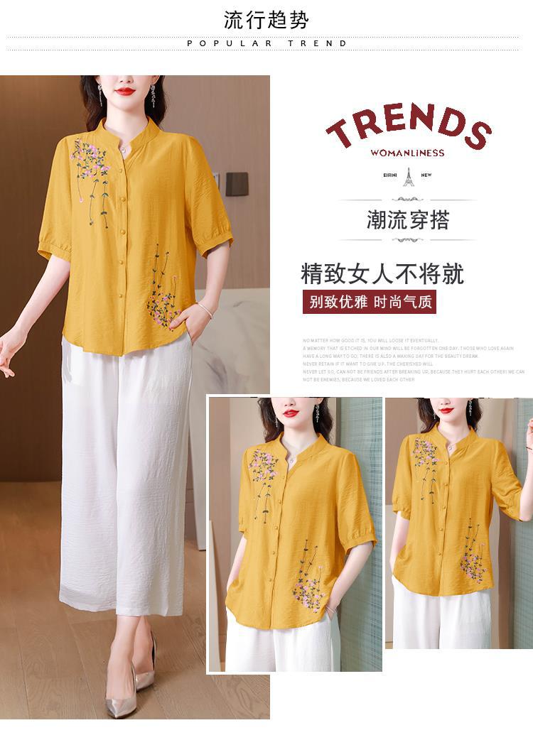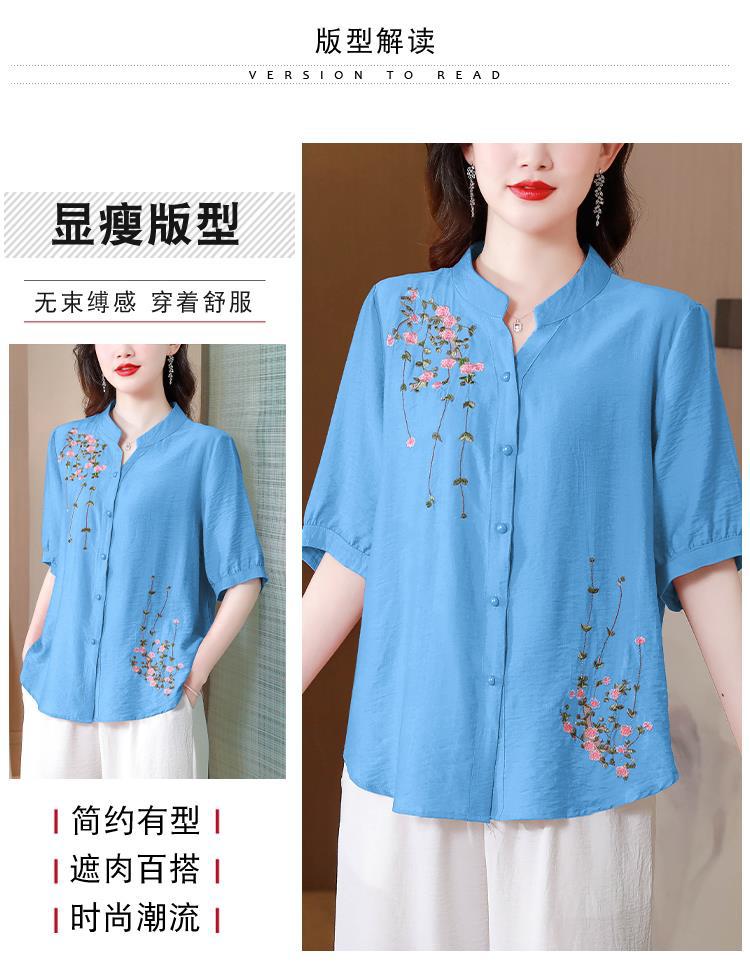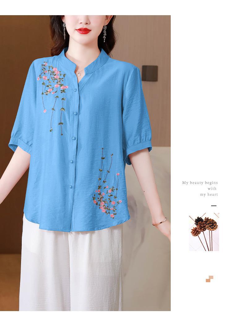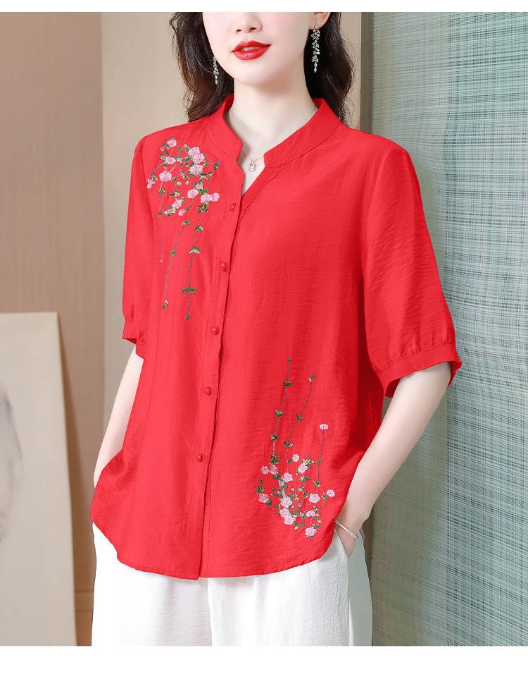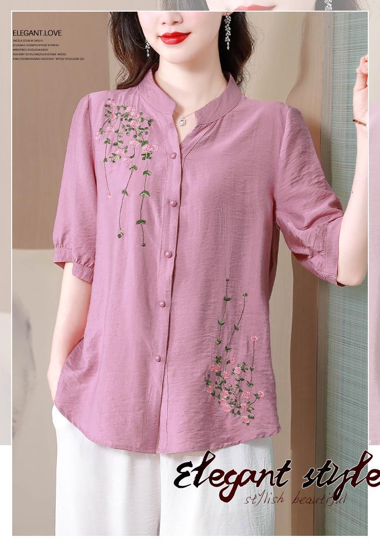 2023 여름 자수 셔츠 여성의 새로운 반팔 면과 린넨 탑 루즈한 플러스 사이즈 캐주얼 여성의 작은 셔츠스토어 가기