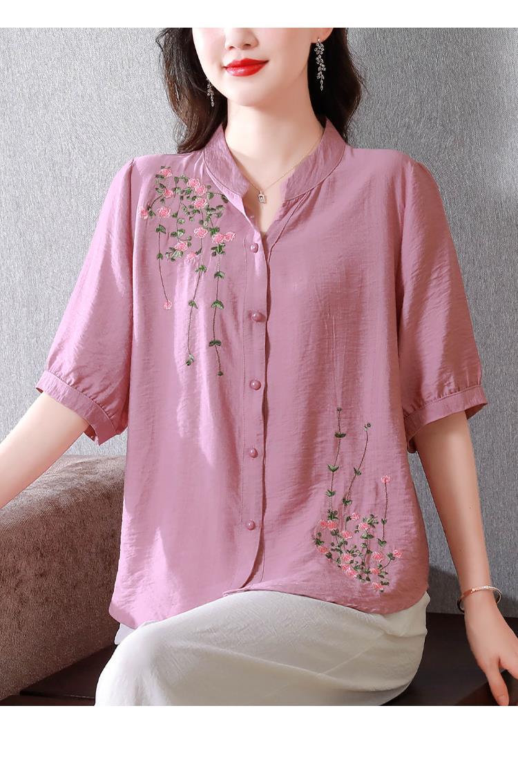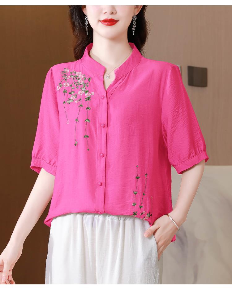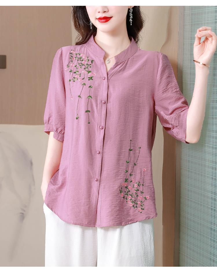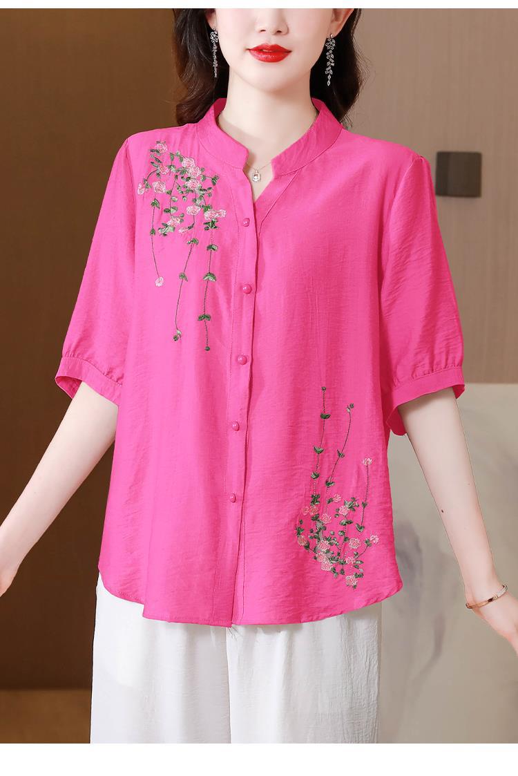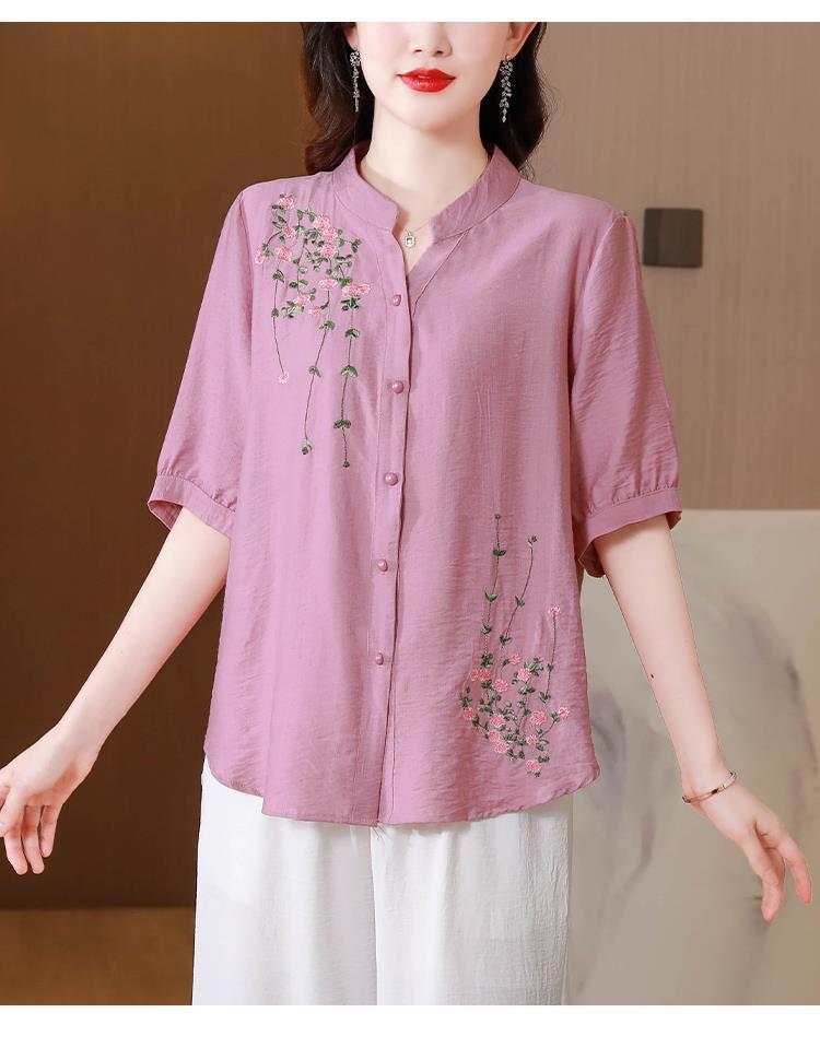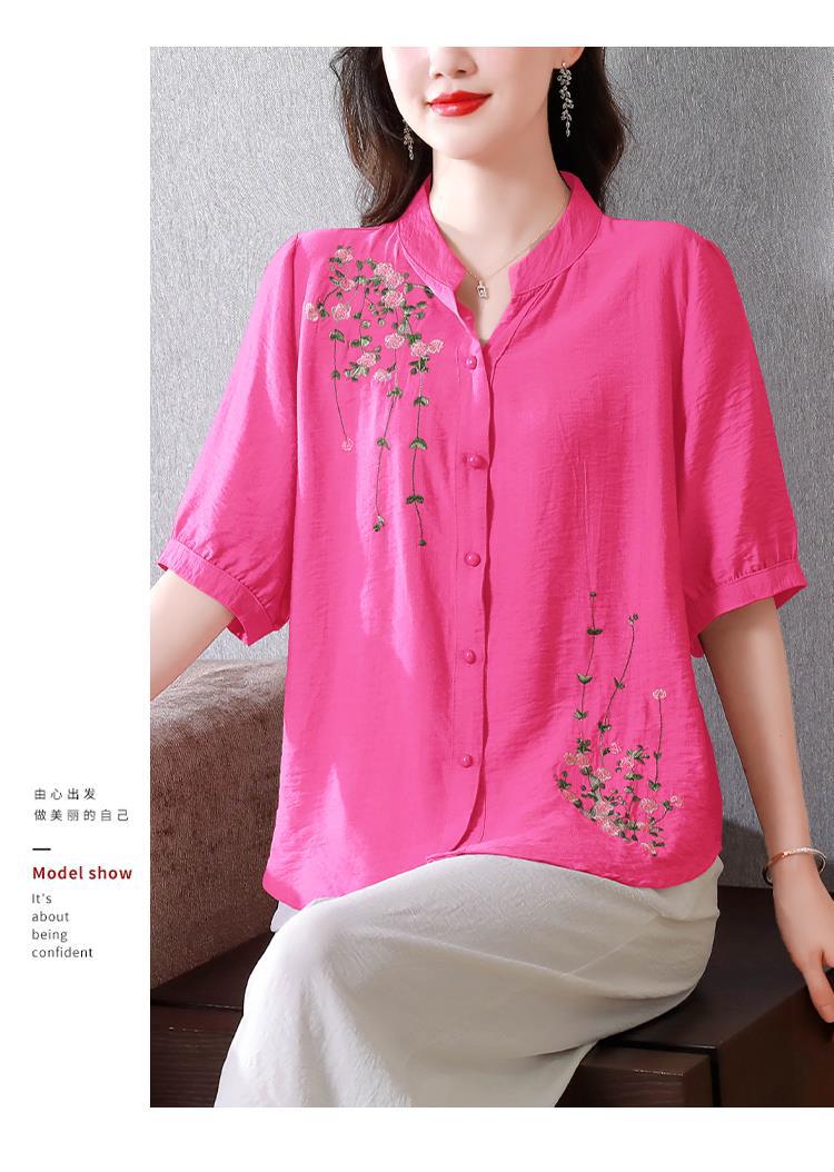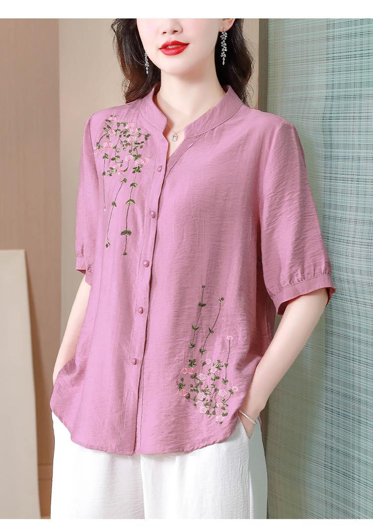 2023 여름 자수 셔츠 여성의 새로운 반팔 면과 린넨 탑 루즈한 플러스 사이즈 캐주얼 여성의 작은 셔츠스토어 가기