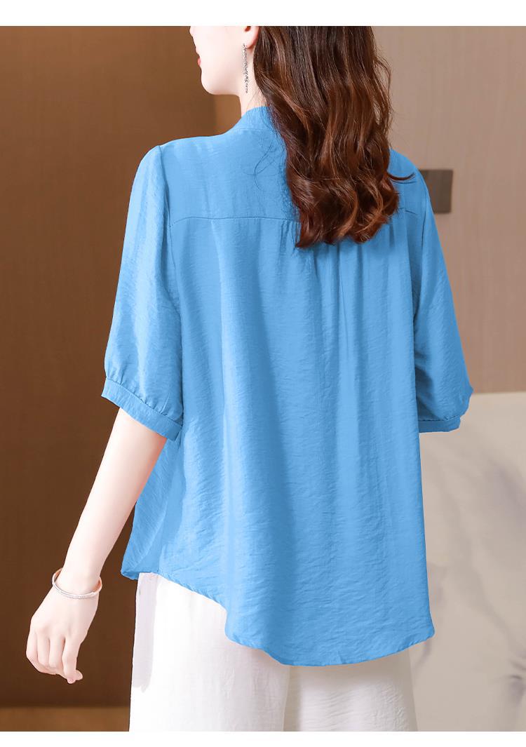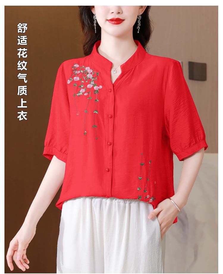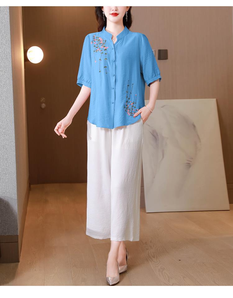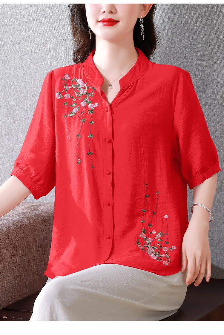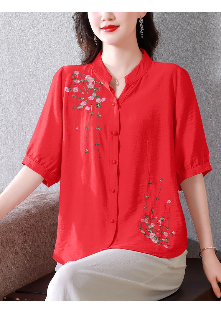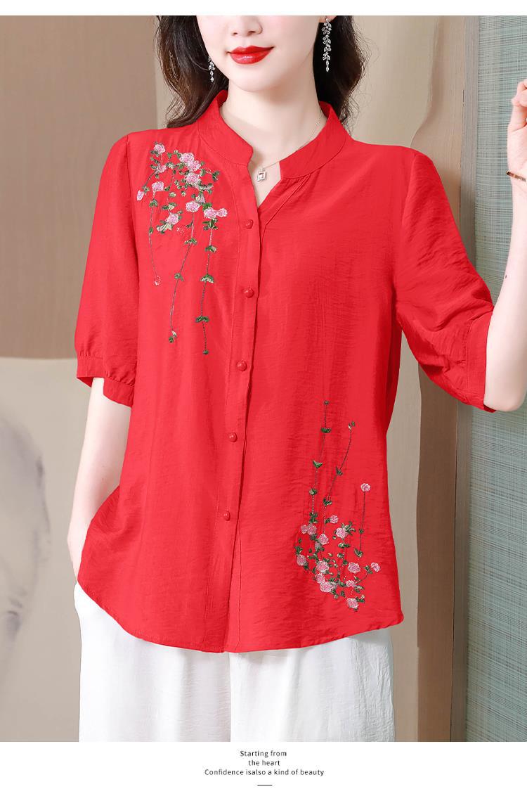 2023 여름 자수 셔츠 여성의 새로운 반팔 면과 린넨 탑 루즈한 플러스 사이즈 캐주얼 여성의 작은 셔츠스토어 가기