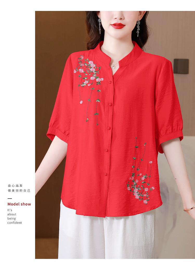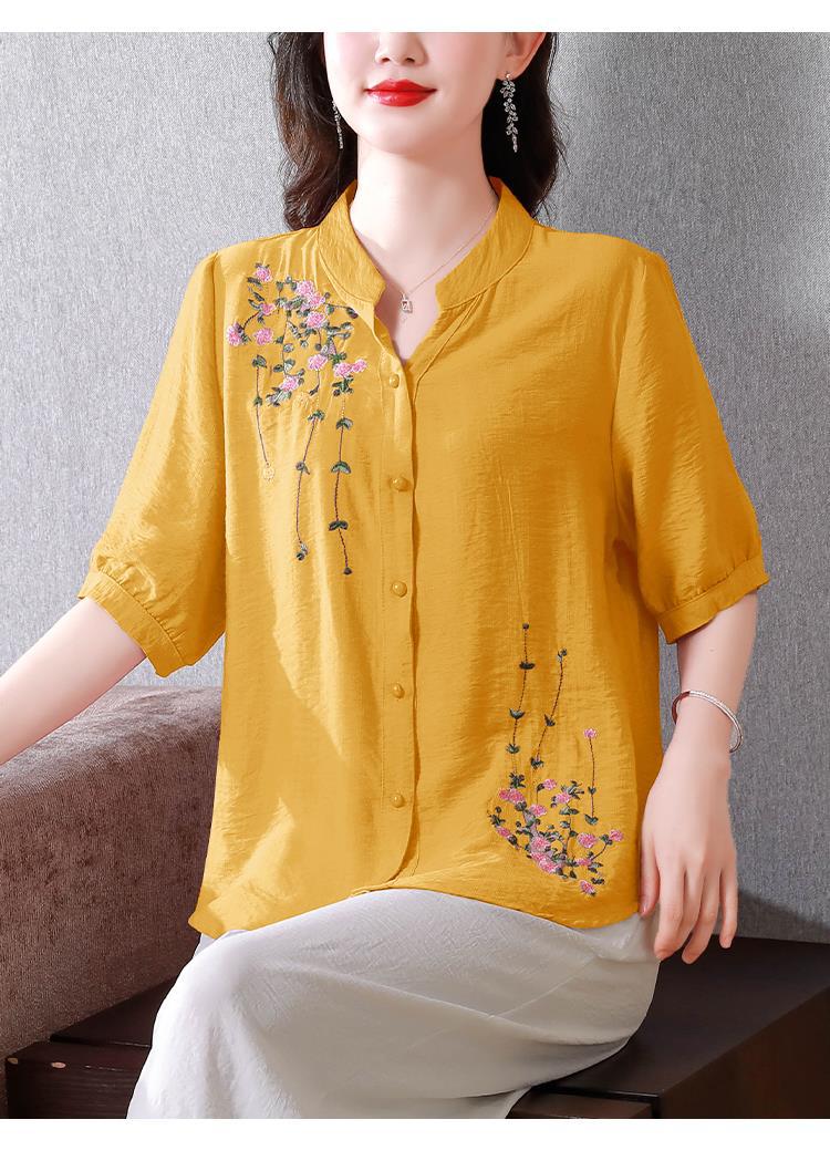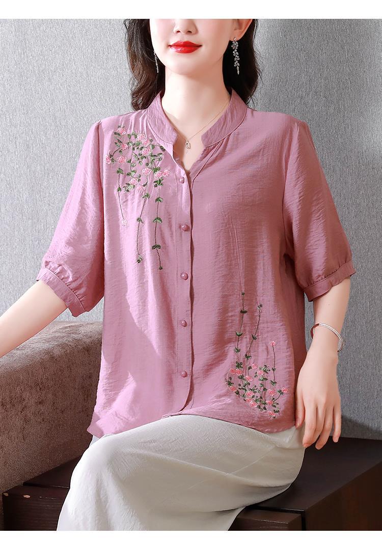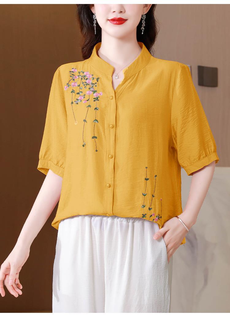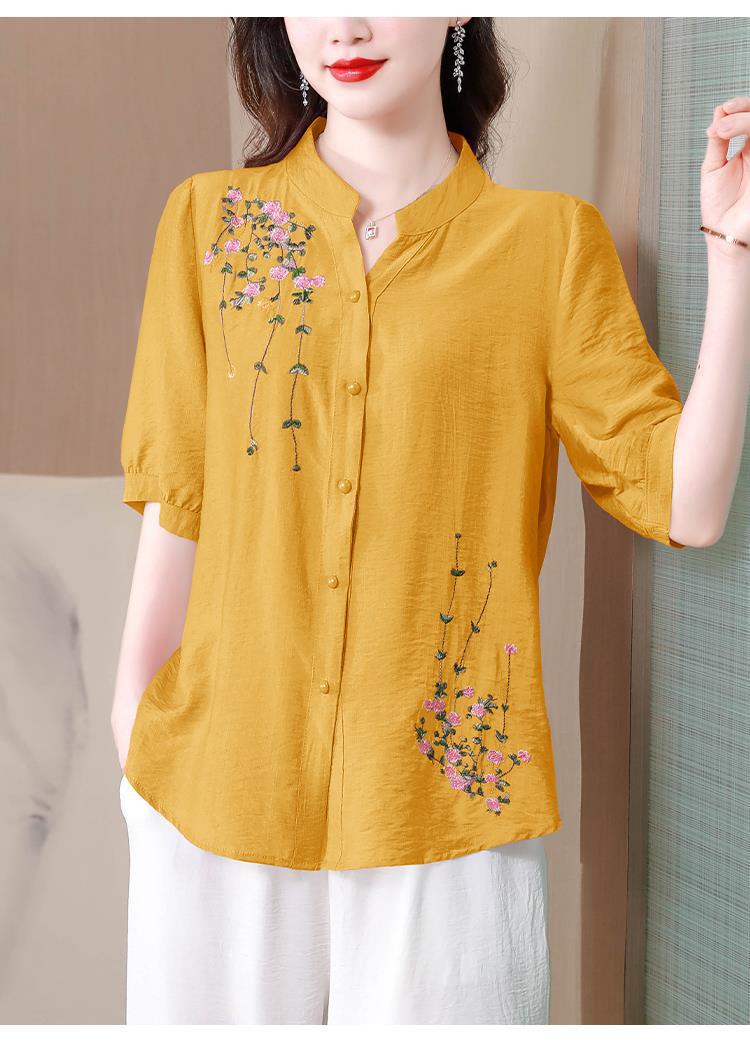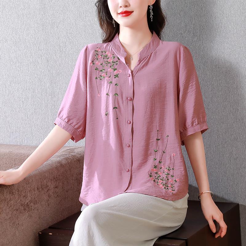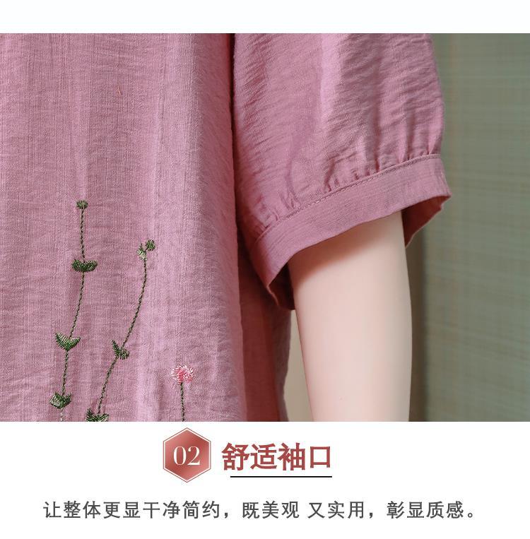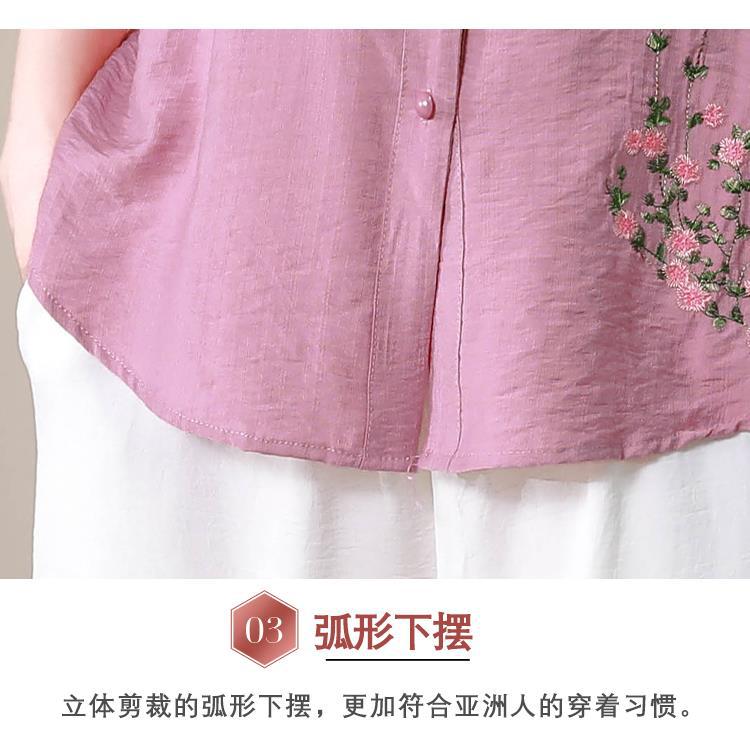 2023 여름 자수 셔츠 여성의 새로운 반팔 면과 린넨 탑 루즈한 플러스 사이즈 캐주얼 여성의 작은 셔츠
