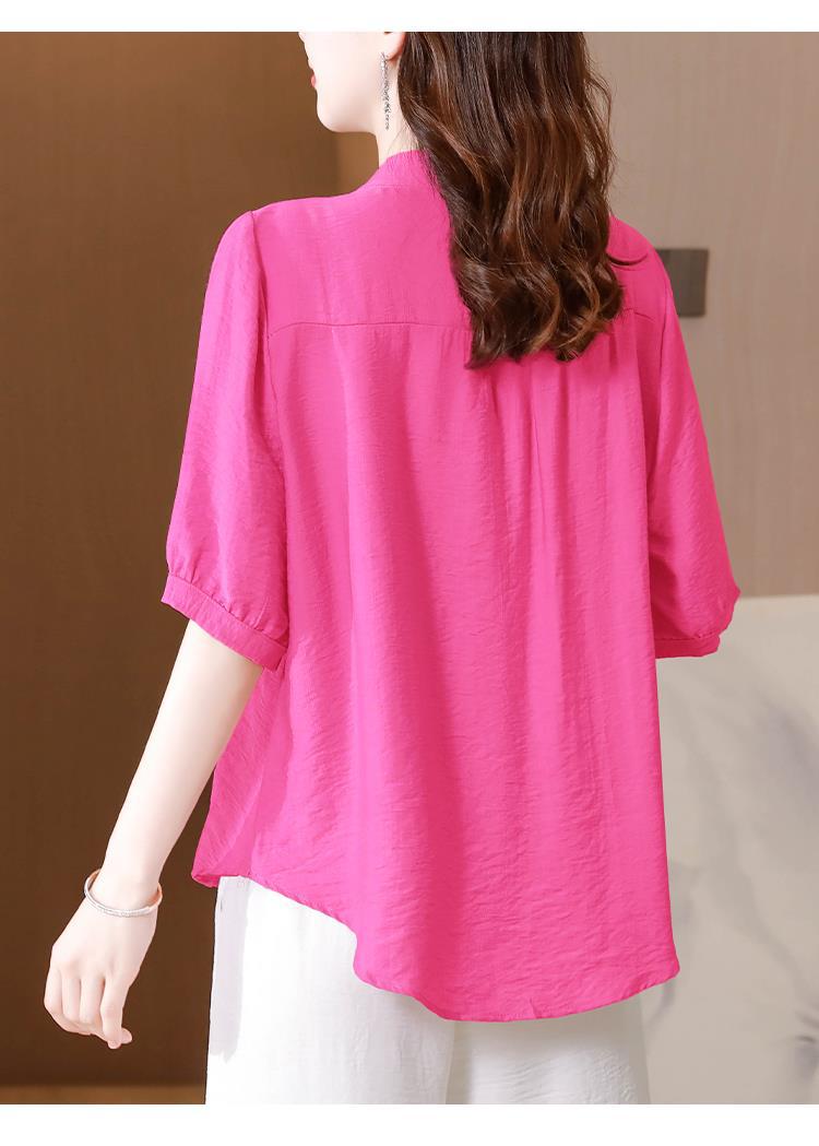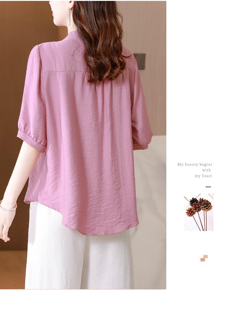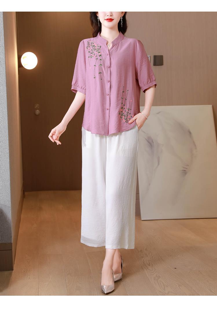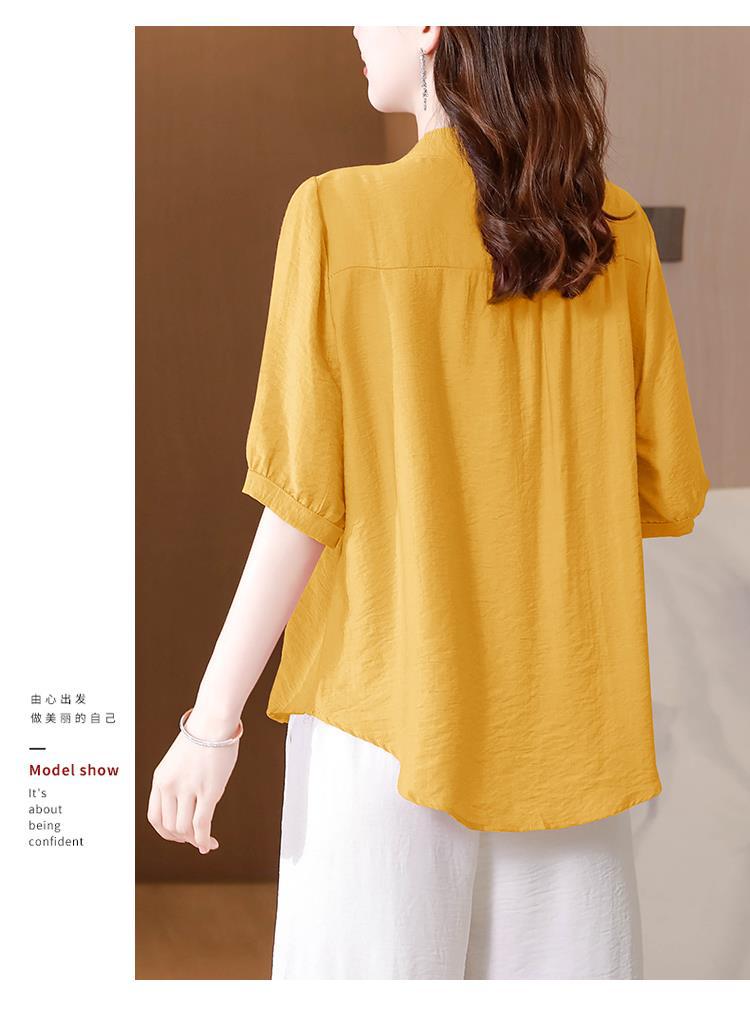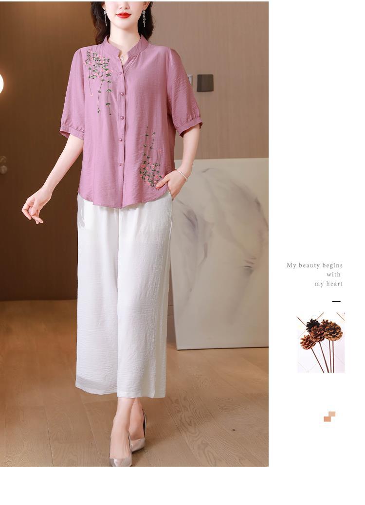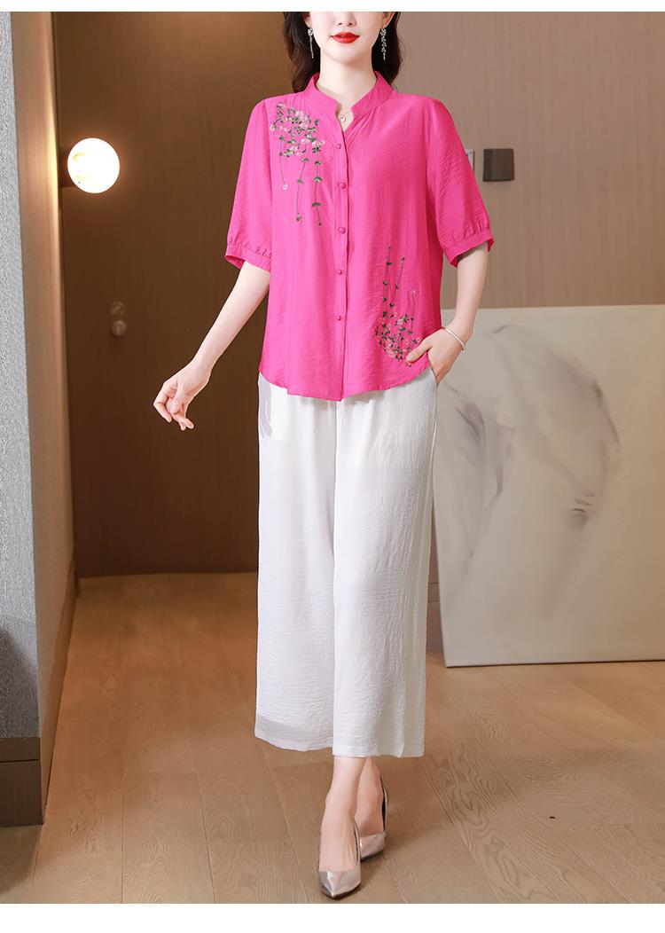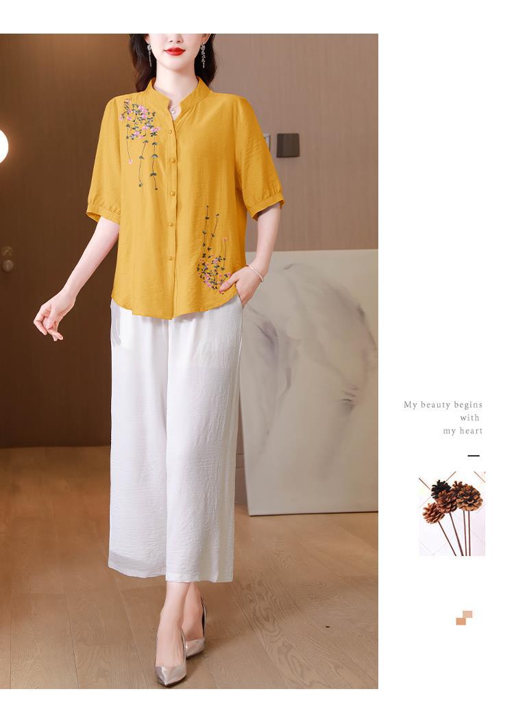2023 여름 자수 셔츠 여성의 새로운 반팔 면과 린넨 탑 루즈한 플러스 사이즈 캐주얼 여성의 작은 셔츠