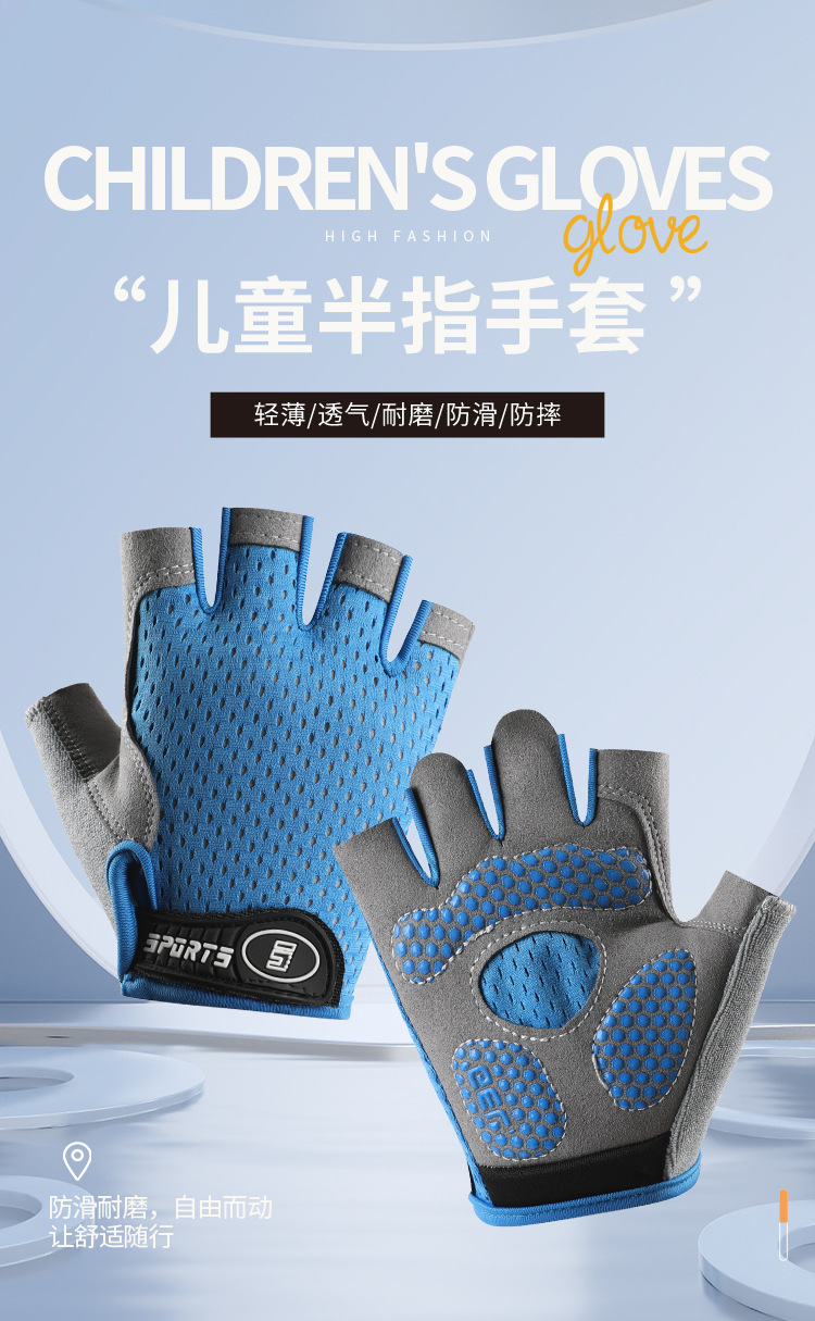 어린이용 스포츠 반손가락 보호 장갑, 얇은 롤러스케이트용 미끄럼 방지 내마모성 트레이닝 장갑, 자전거, 밸런스 바이크용 통기성 장갑