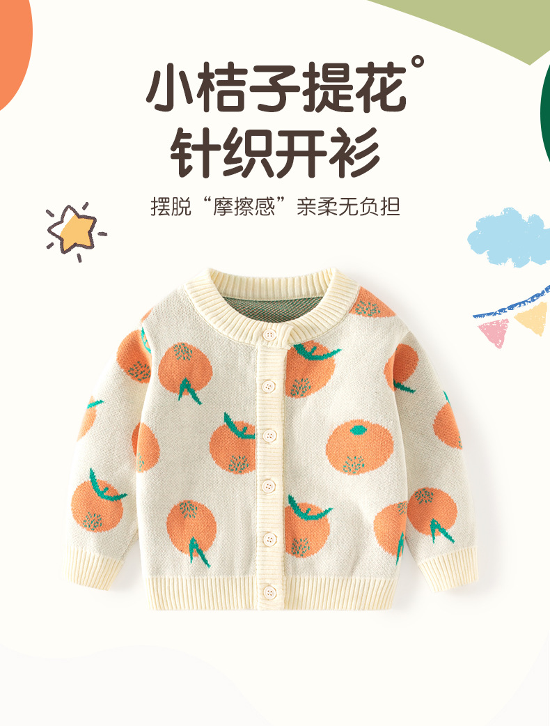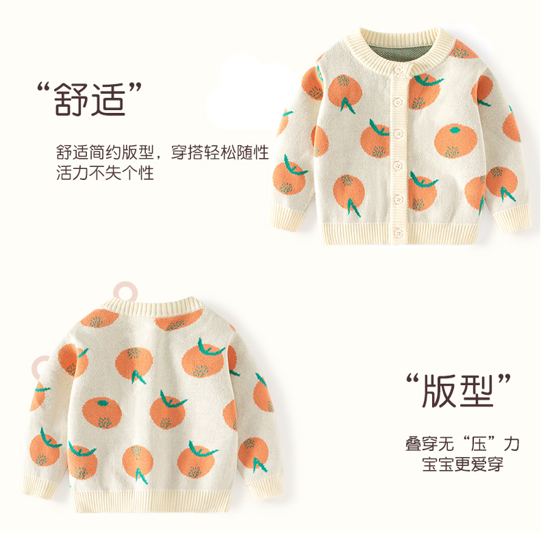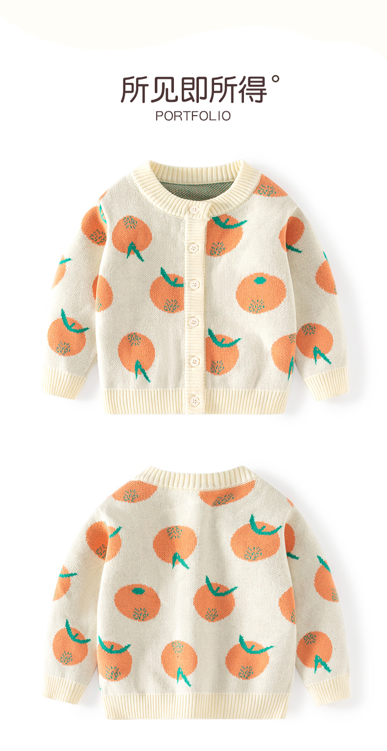 오렌지 자카드 순면 A급 니트 아기 가디건 귀여운 아동 스웨터 가디건 가을 겨울 니트 여아 스웨터스토어 가기