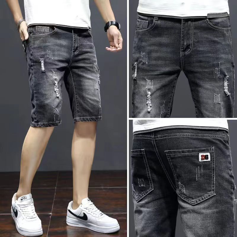새로운 찢어진 청바지 남자 여름 얇은 한국 패셔너블 캐주얼 반바지 스트레이트 루즈 핸섬 바지스토어 가기