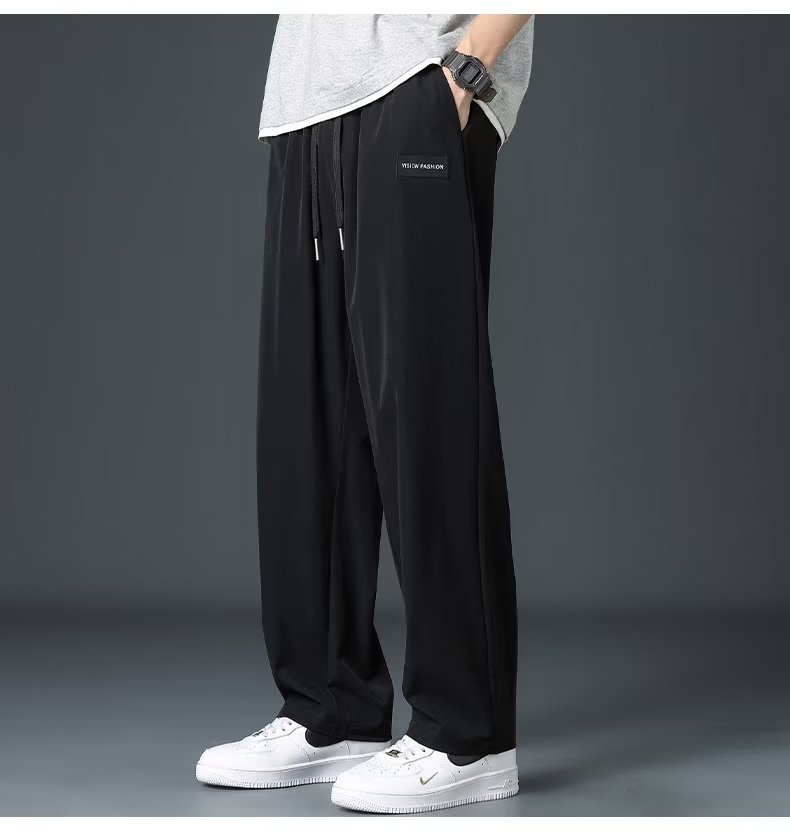 공장 도매 새로운 느슨한 캐주얼 바지 남자의 한국 트렌드 아이스 실크 스트레이트 튜브 조커 바지 여름 얇은 바지스토어 가기