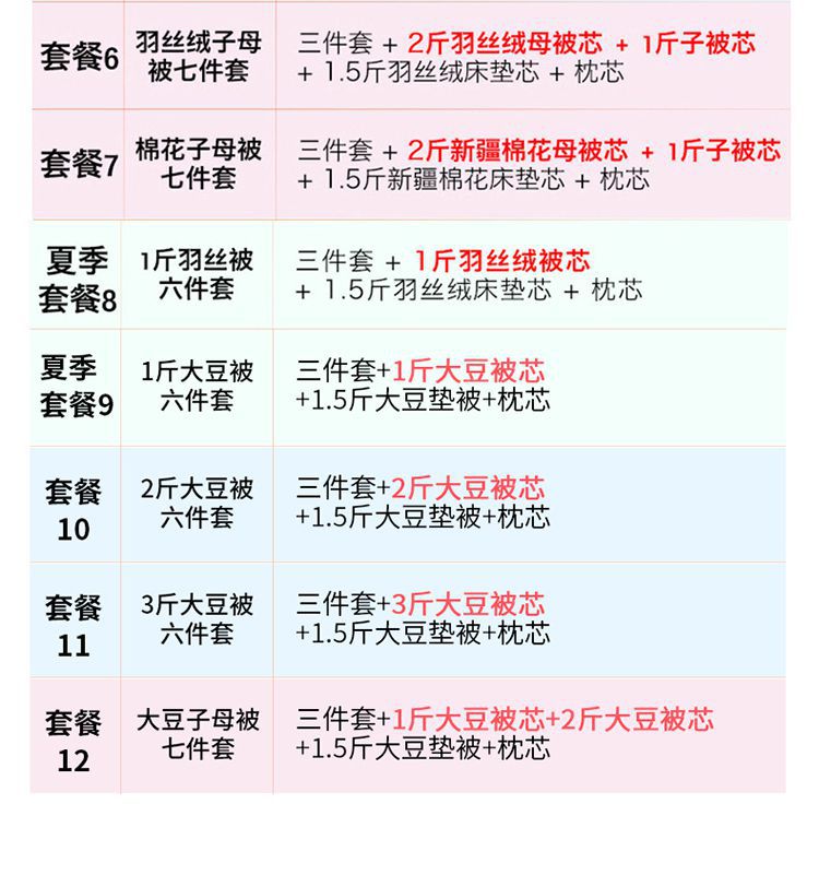 • (썸머 패키지 8) 깃털 벨벳 이불 1kg 6 종 세트