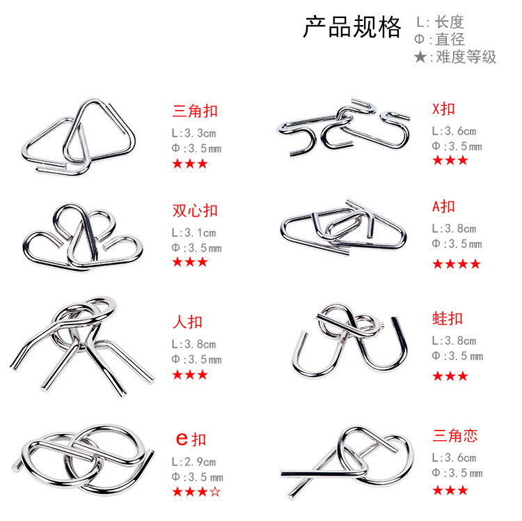 학생용 메탈 인텔리전스 버클 8 종 세트 풀리기 8 종 세트 풀리기 9 링크 어린이 클래식 교육 완구