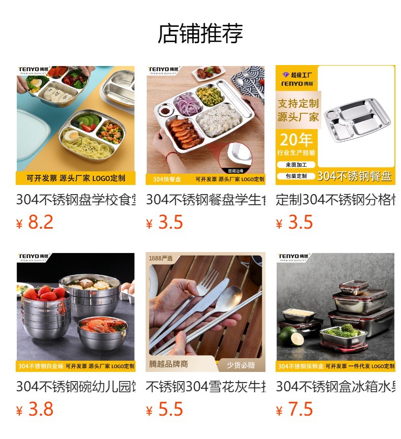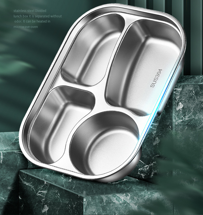 304 스테인리스 식판 학교 학생 식당 불규칙 트레이 칸막이 레스토랑 식사용 간식 샐러드 식기스토어 가기