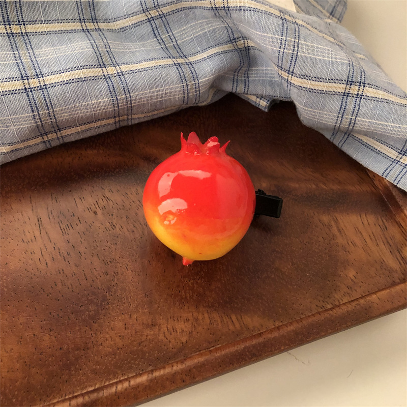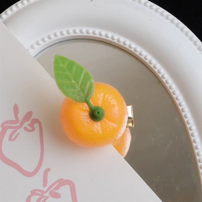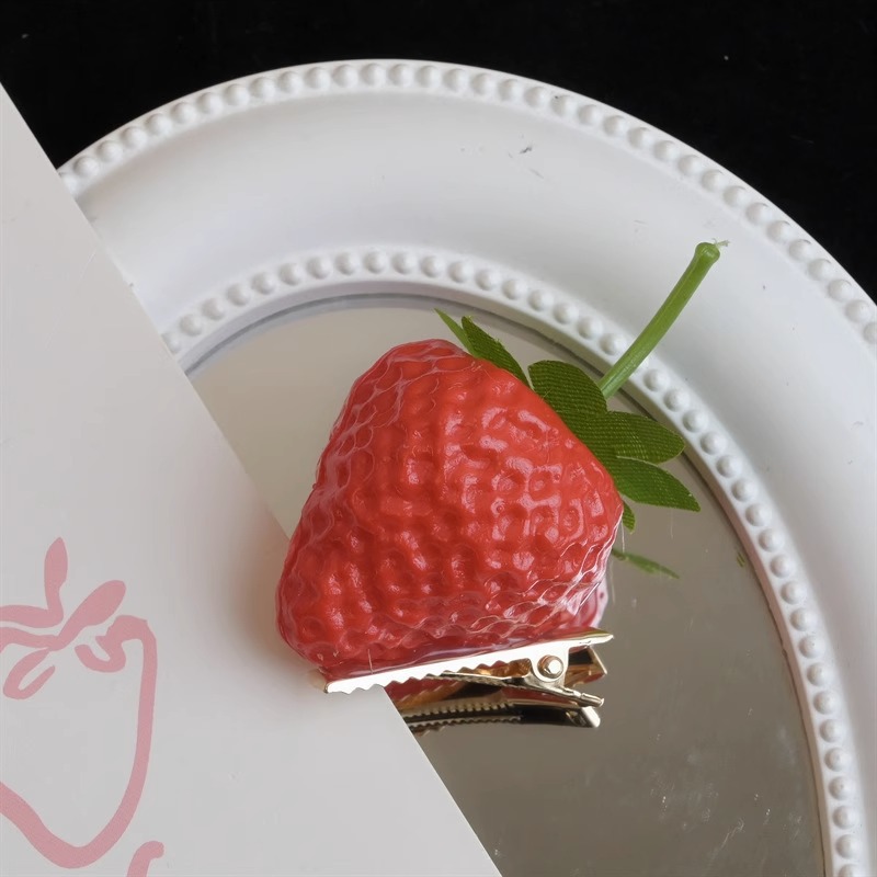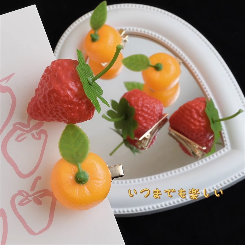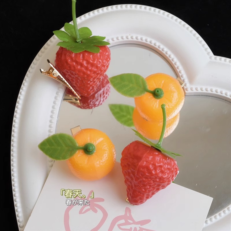재미 있고 재미있는 시뮬레이션 딸기 오렌지 머리핀 전면 프린지 머리핀 깨진 머리 오리 부리 머리핀 모자 스테레오스토어 가기
