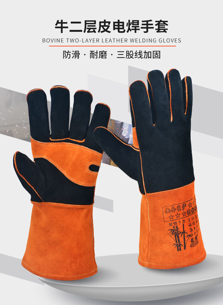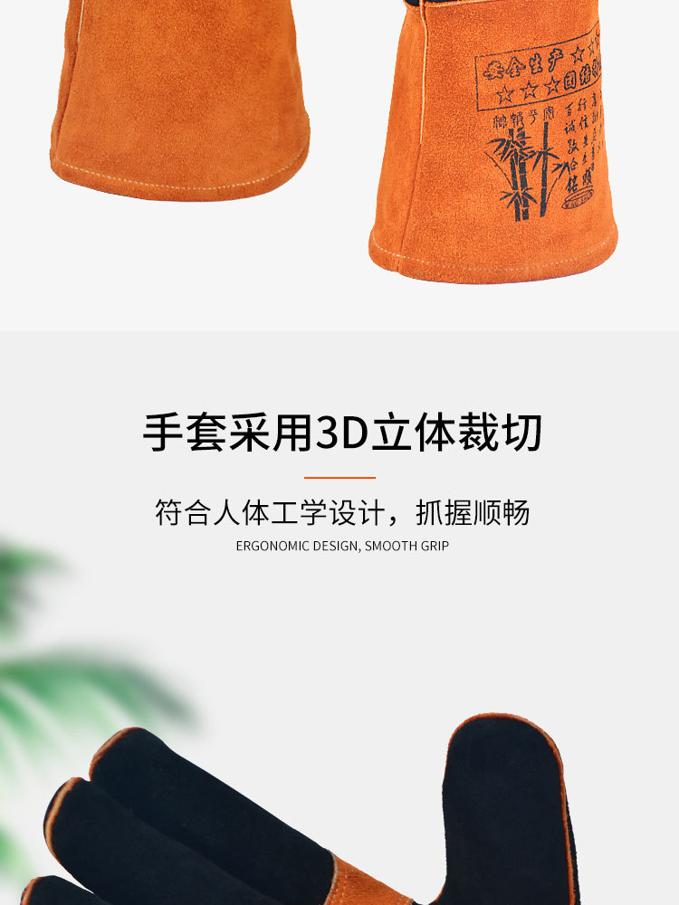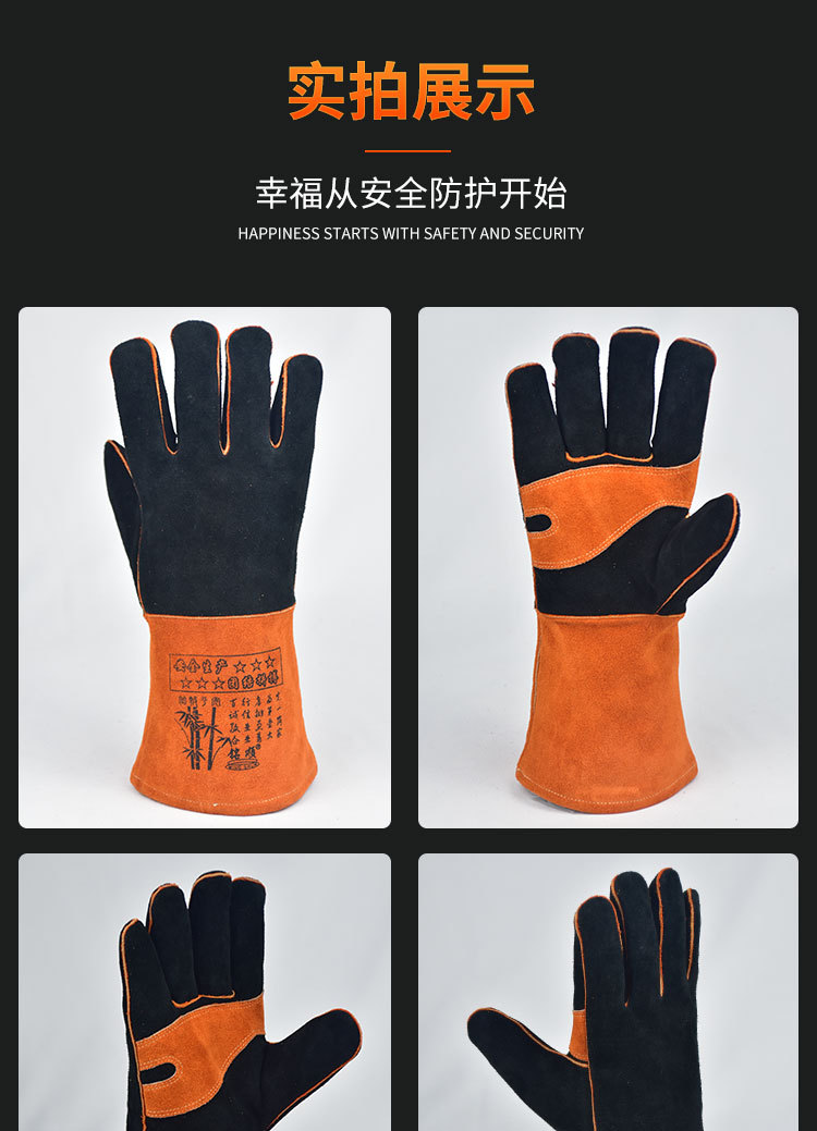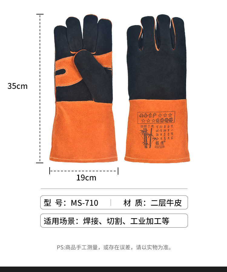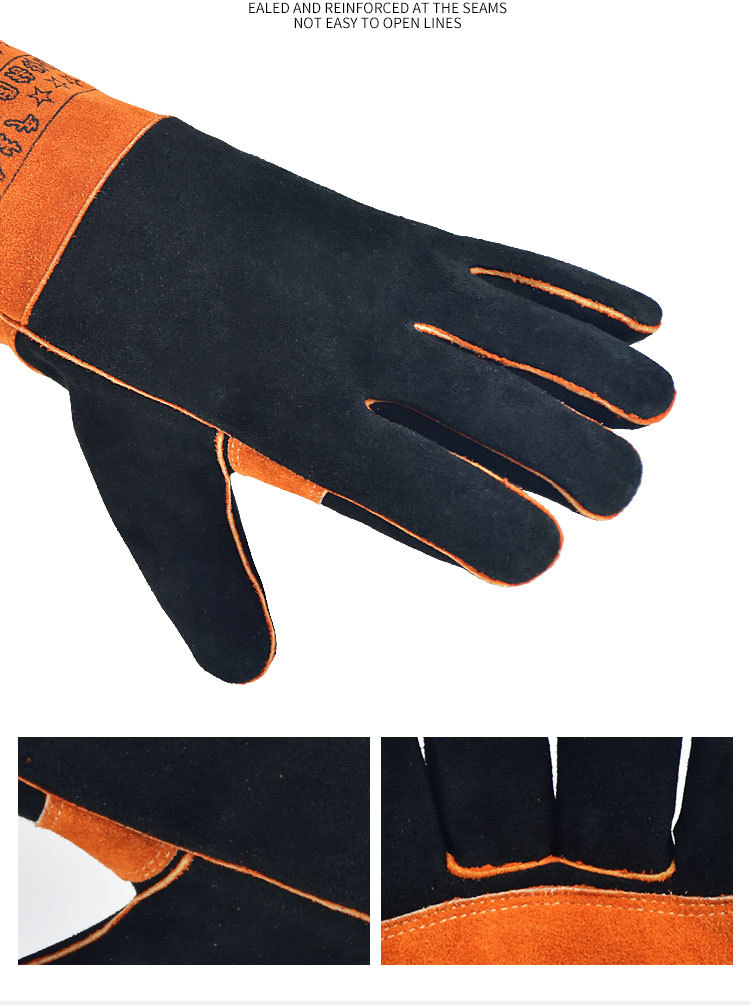 Mingshun 브랜드 710 소 가죽 용접 장갑 미끄럼 방지 내마모성 고온 내통기성 취급 작업 보호 장갑
