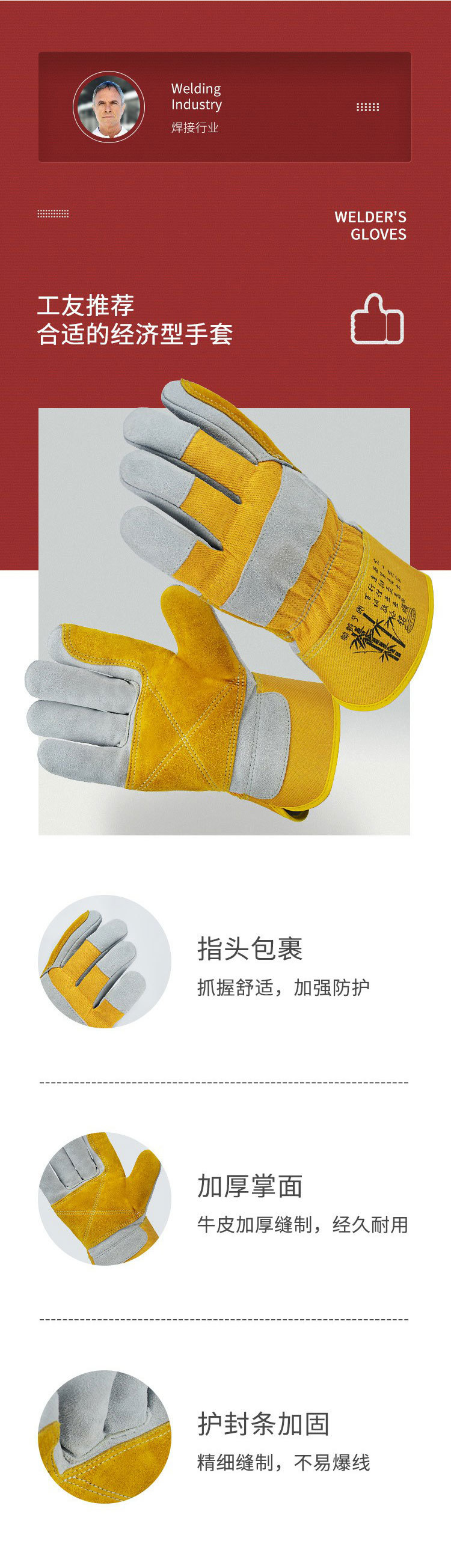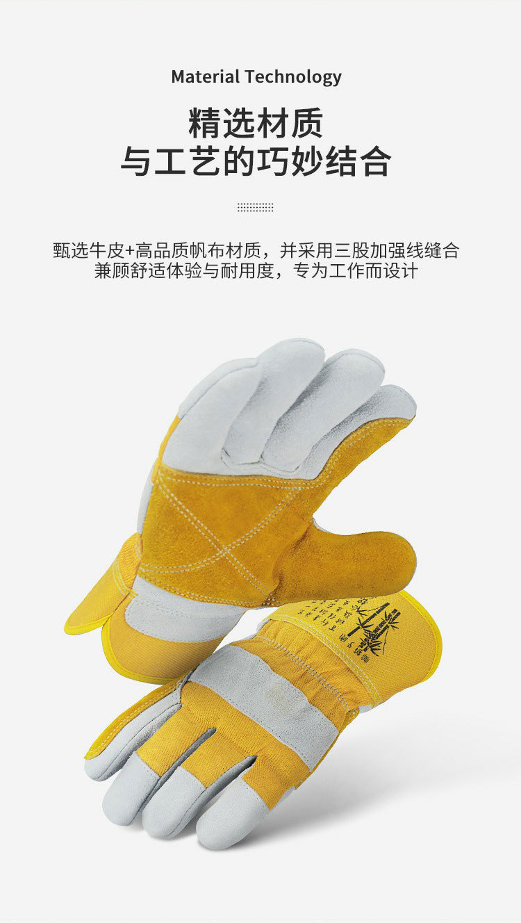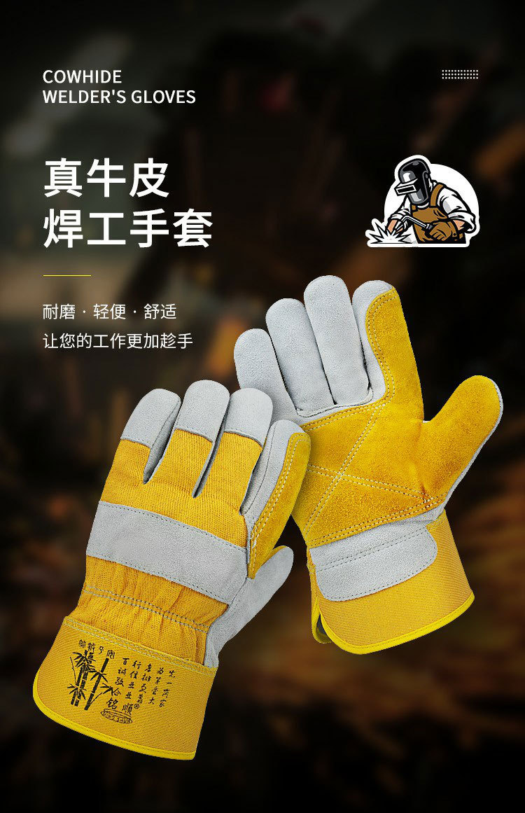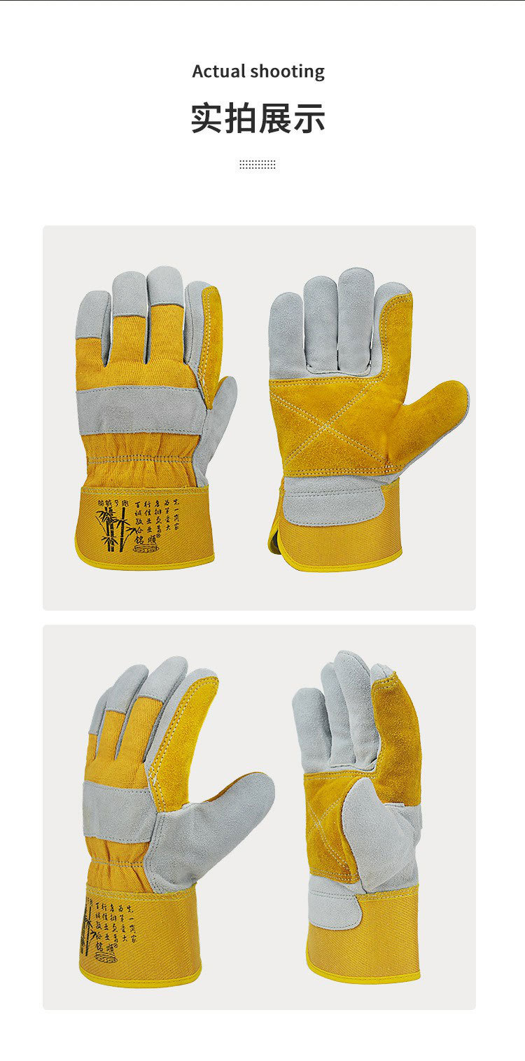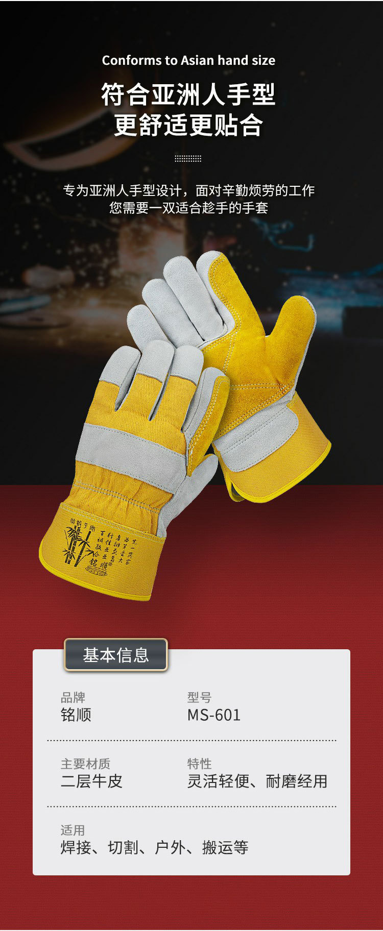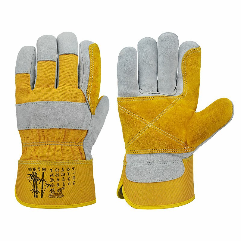 Mingshun 브랜드 소 가죽 용접 장갑 601 내마모성 땀 흡수성 소 2 층 가죽 장갑 취급 보호 노동 장갑
