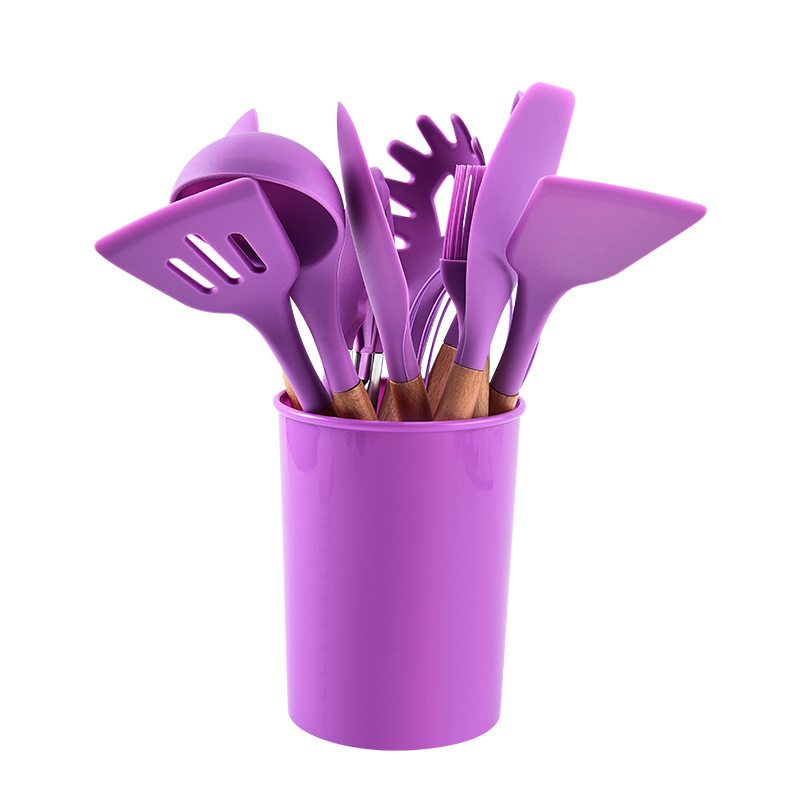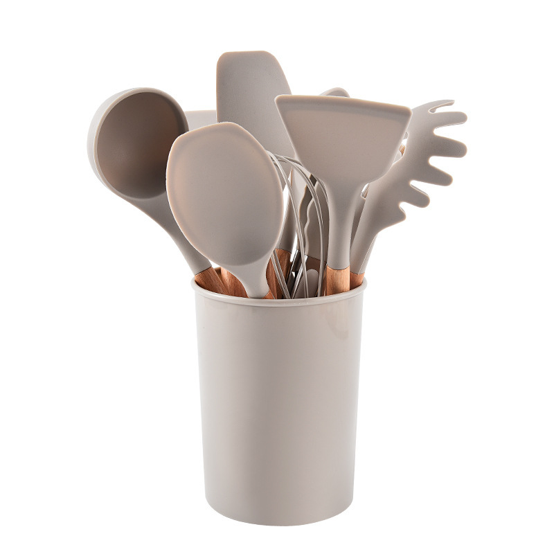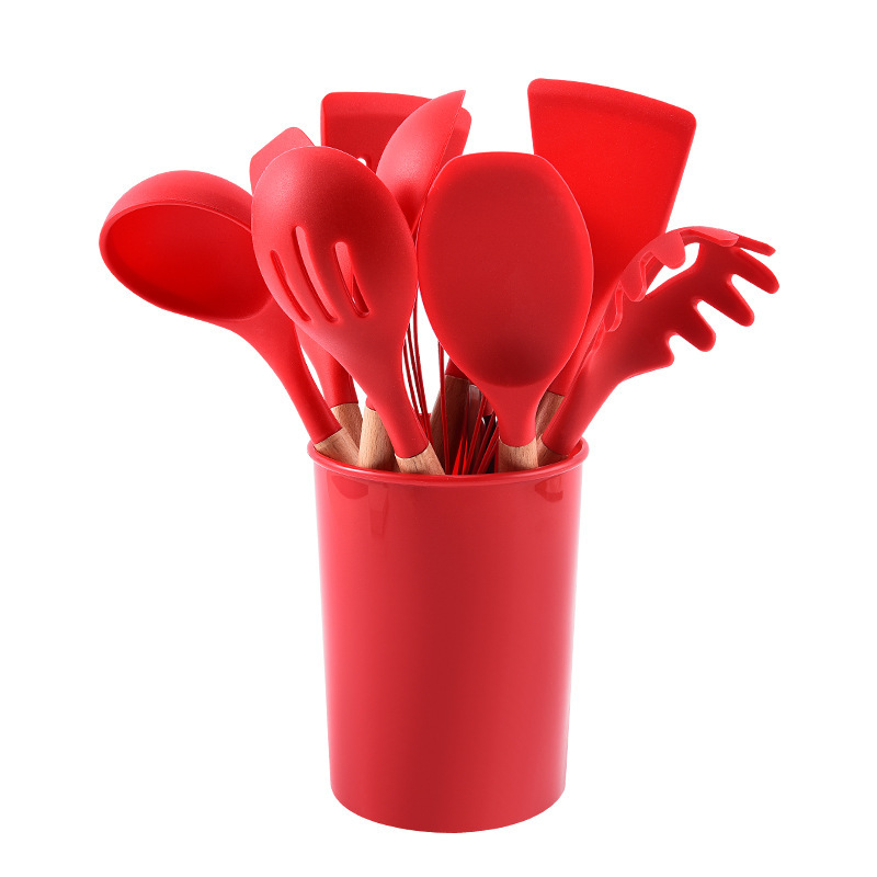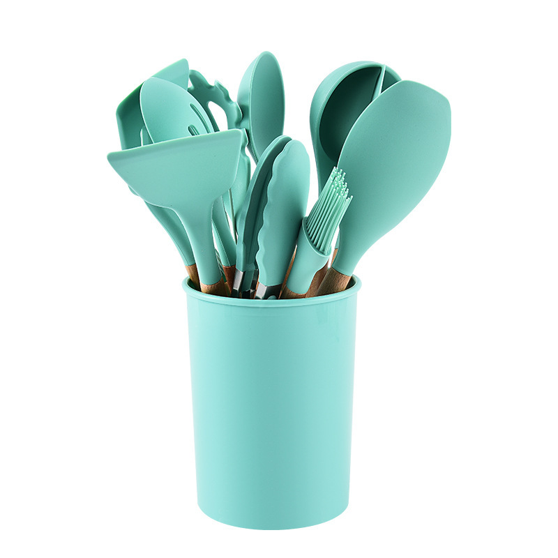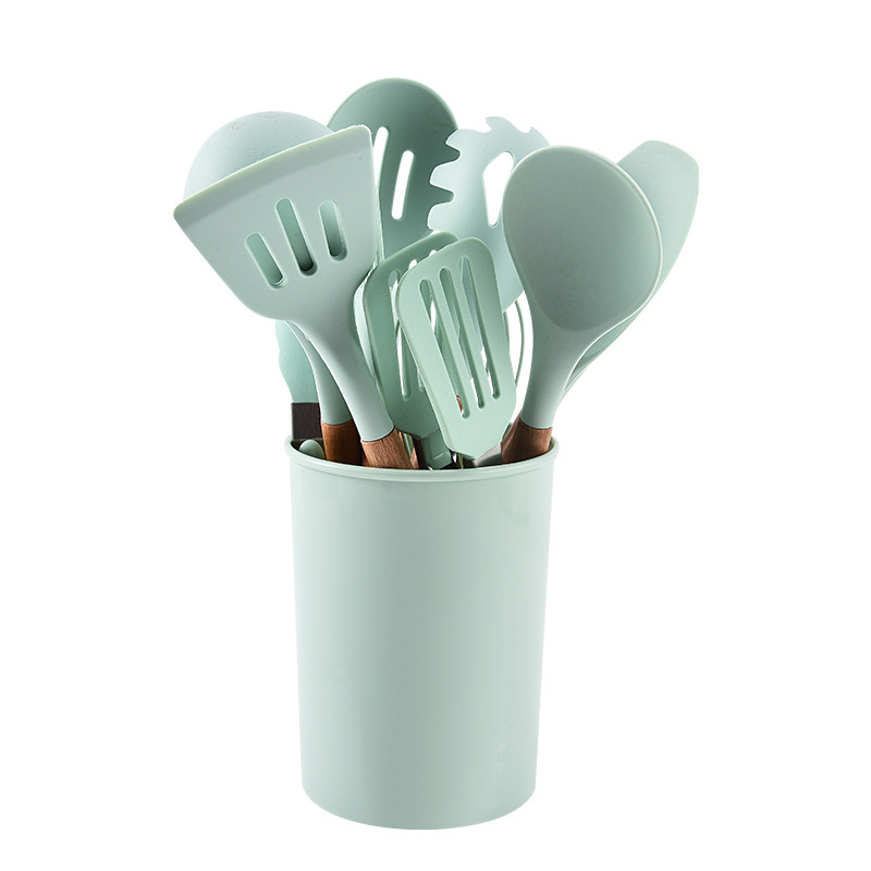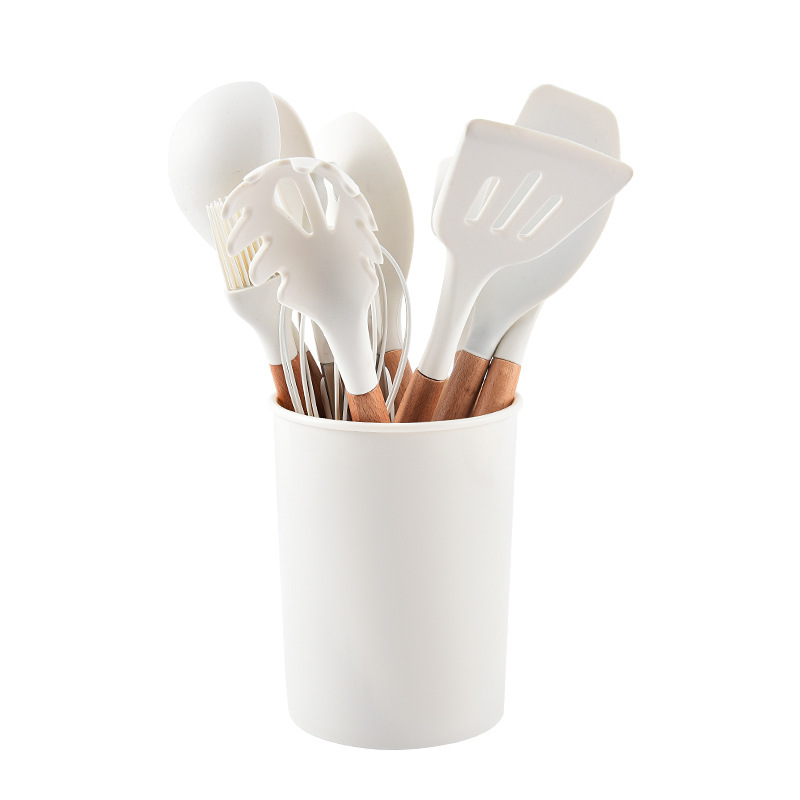 나무 손잡이 붙지 않는 실리콘 주방 용품 세트 주방 도구 주걱 수프 스푼 저장 통 요리 주걱 스푼 12 개 세트