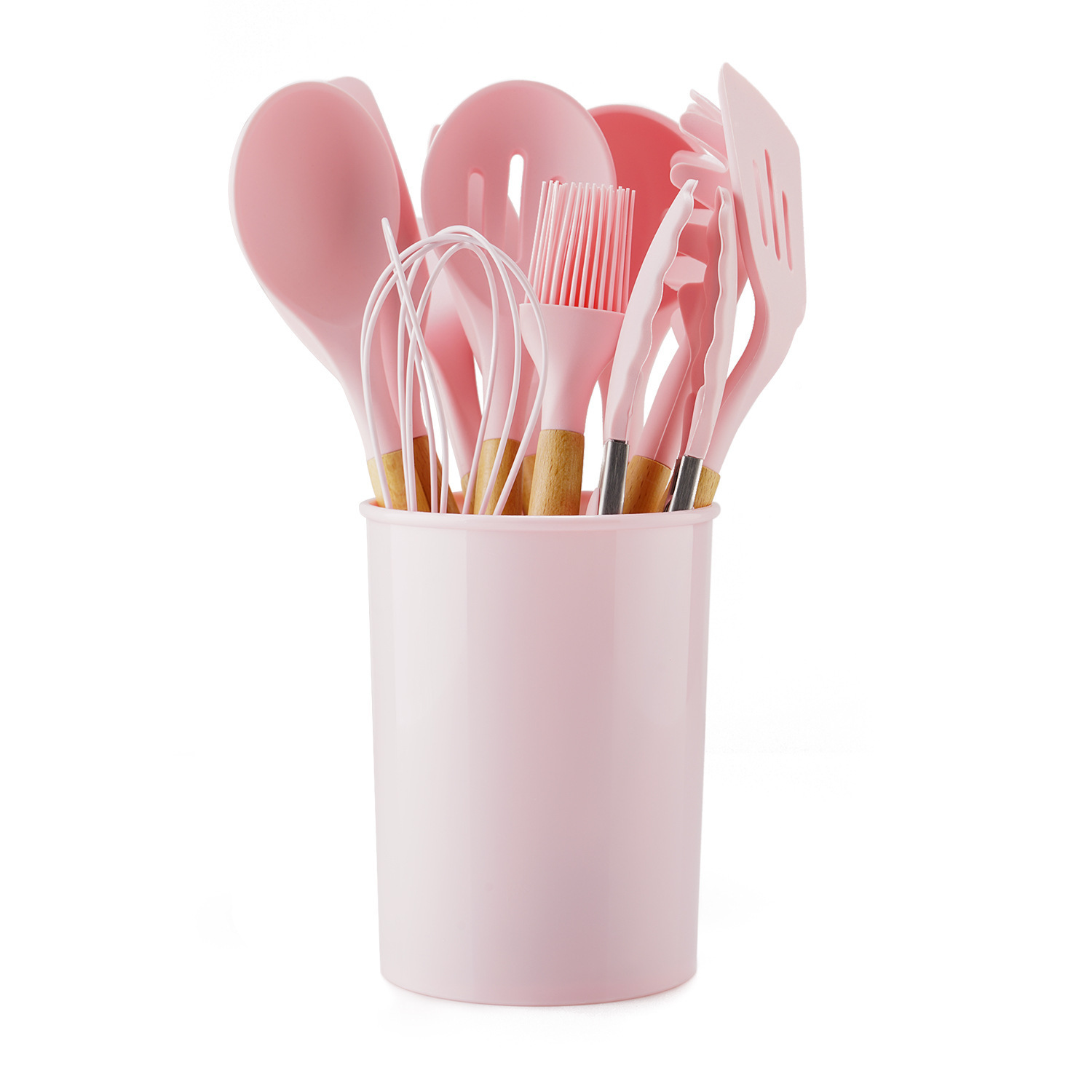 나무 손잡이 붙지 않는 실리콘 주방 용품 세트 주방 도구 주걱 수프 스푼 저장 통 요리 주걱 스푼 12 개 세트스토어 가기