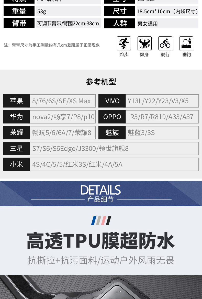2023 새로운 야외 스포츠 암 백 터치 스크린 휴대 전화 방수 암 벨트 러닝 피트니스 장비 암 백