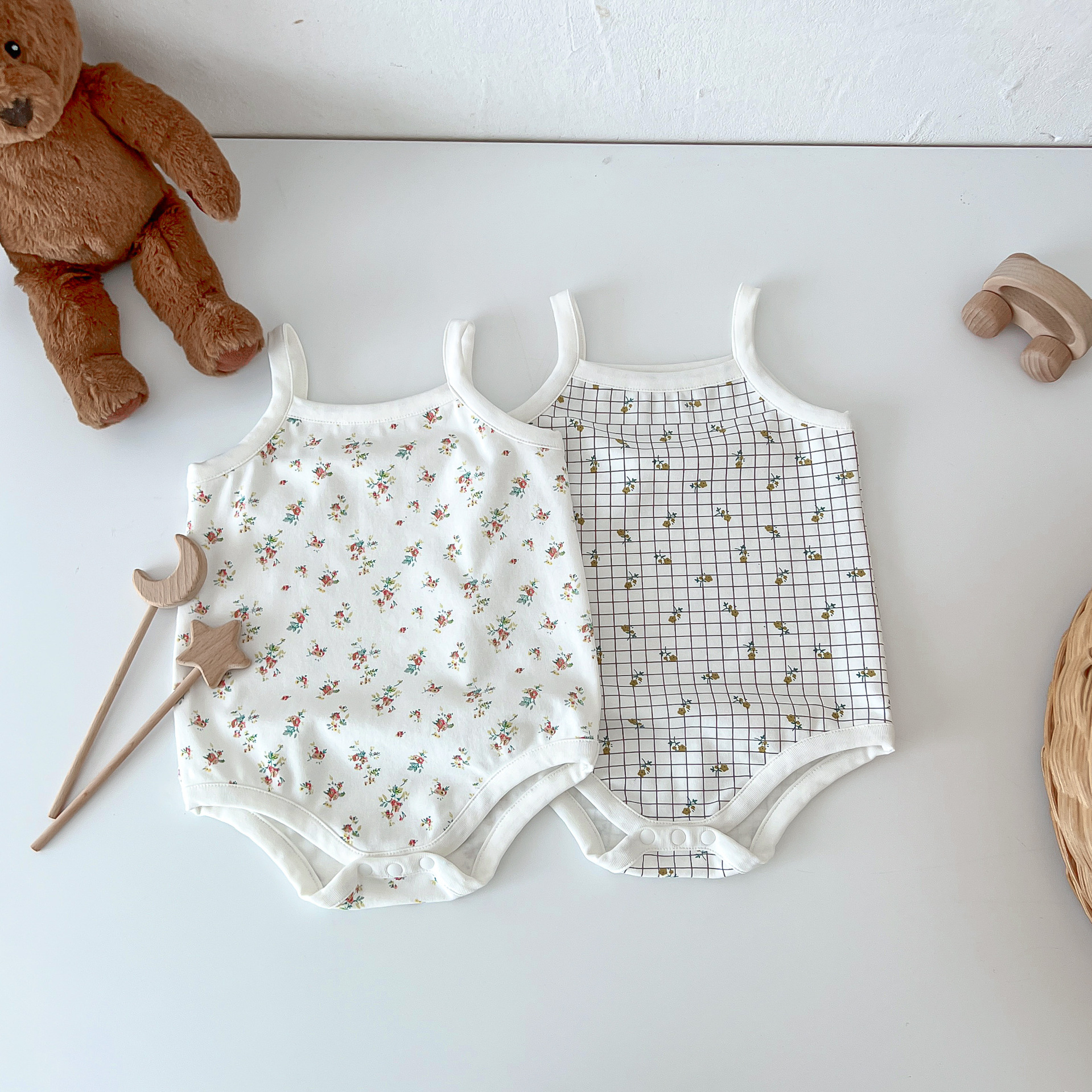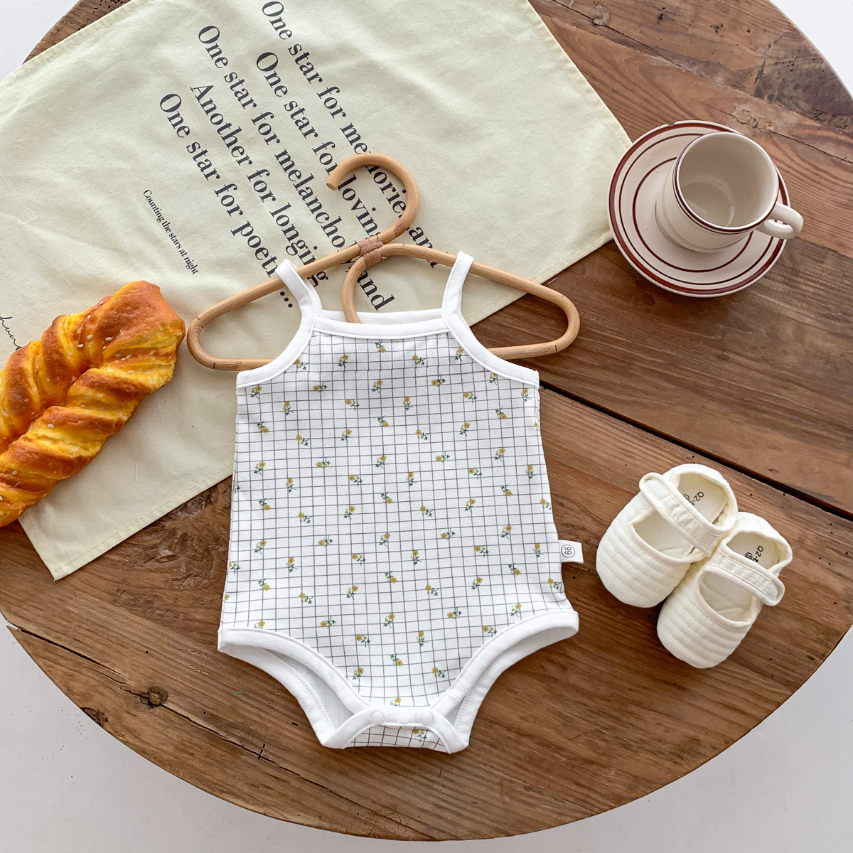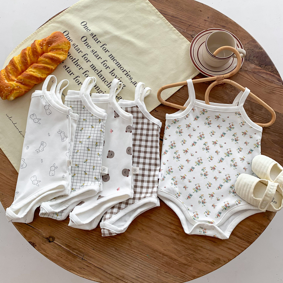 여성의 보물 여름 슬링 점프 수트 아기의 한국식 인쇄 얇은 랩 점프 슈트 신생아를 위한 통기성 편안한 등산 세트스토어 가기