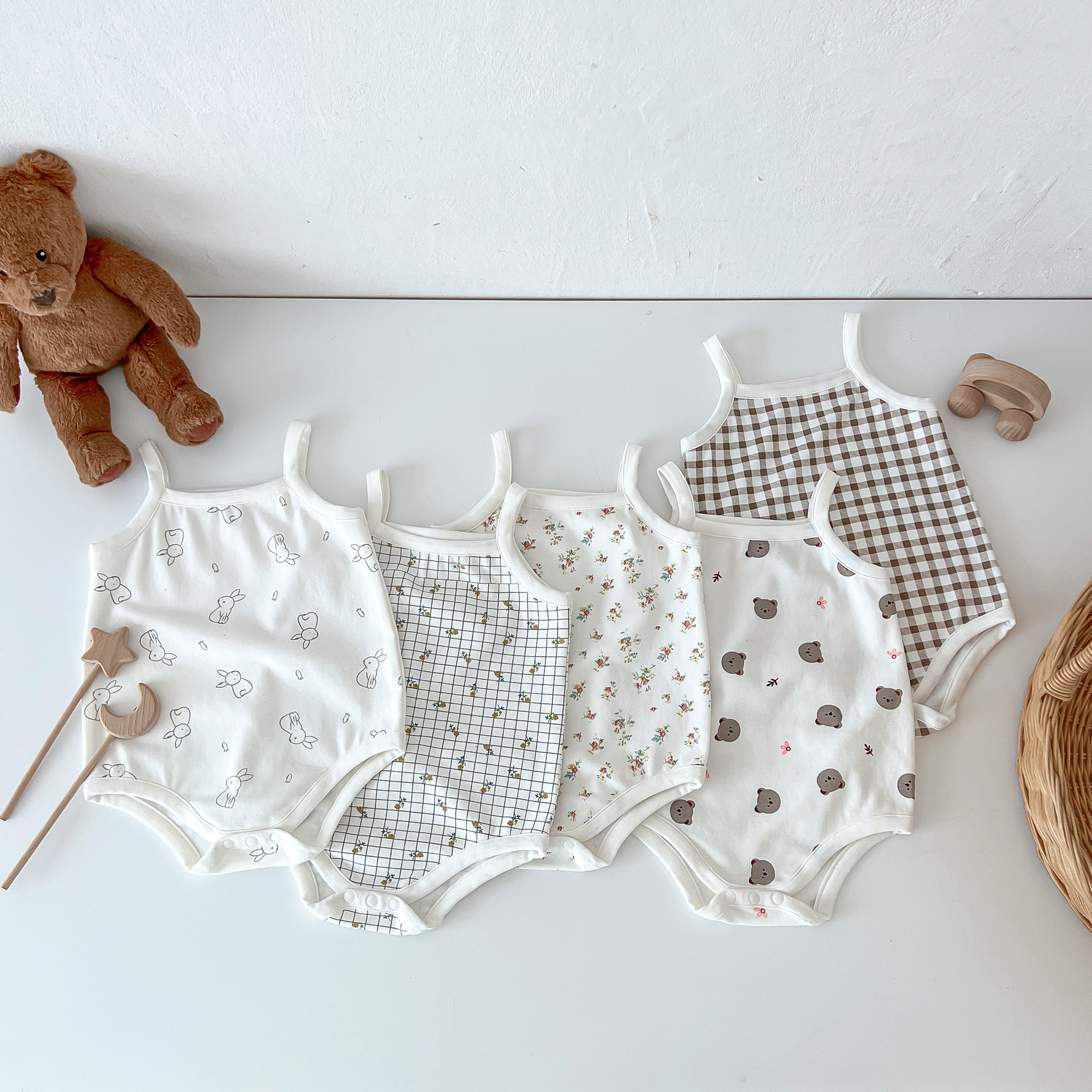 여성의 보물 여름 슬링 점프 수트 아기의 한국식 인쇄 얇은 랩 점프 슈트 신생아를 위한 통기성 편안한 등산 세트