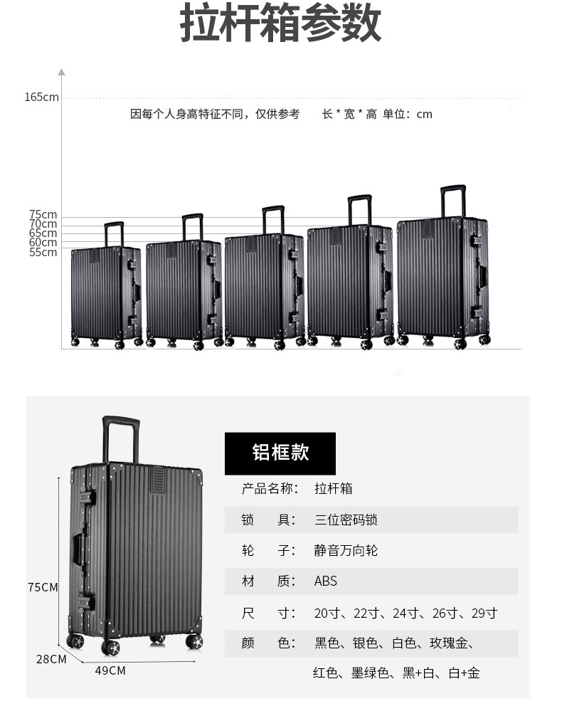 알루미늄 프레임 수하물 트롤리 여행 수하물 탑승 2024 인치 휴대용 암호 유니버설 휠 가방 하이 컬러 레드스토어 가기