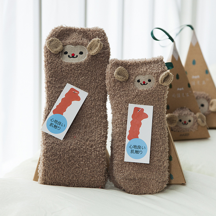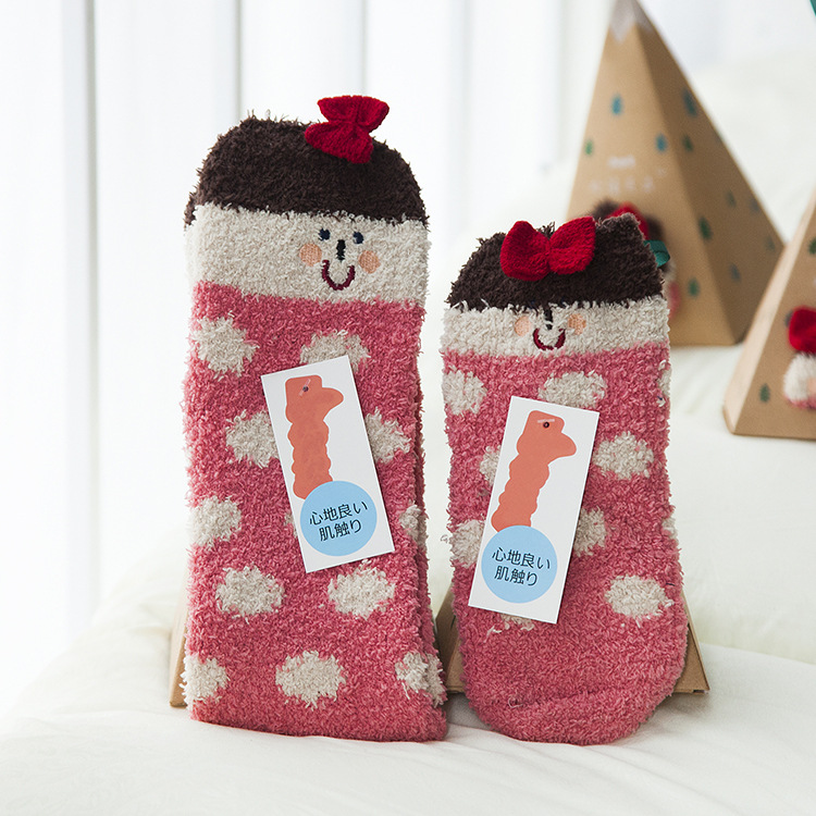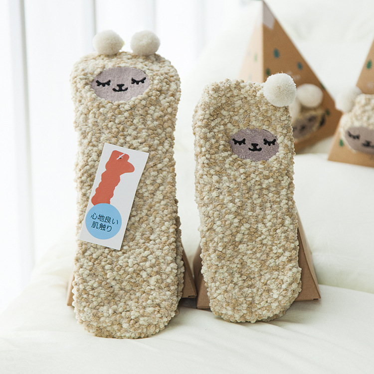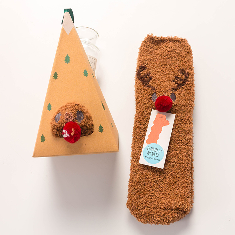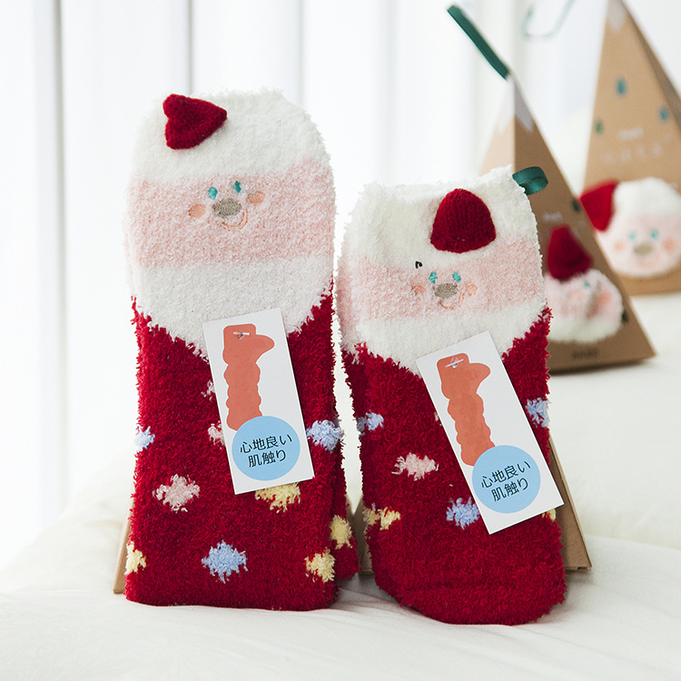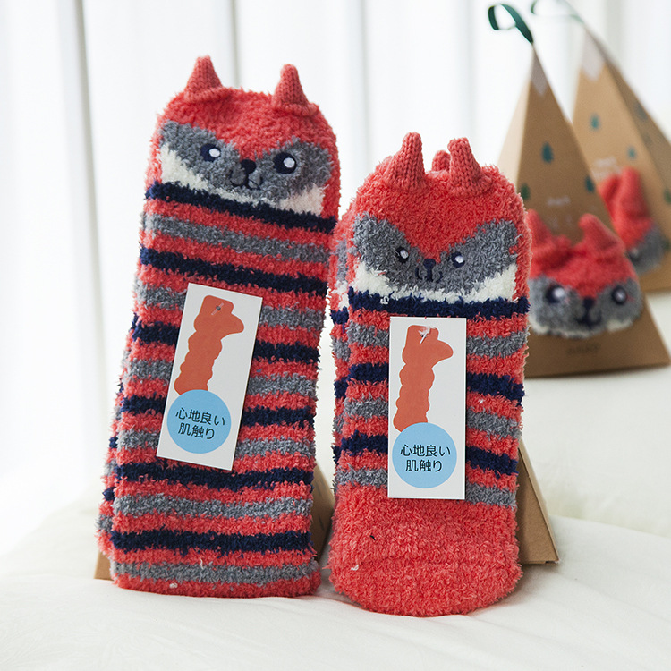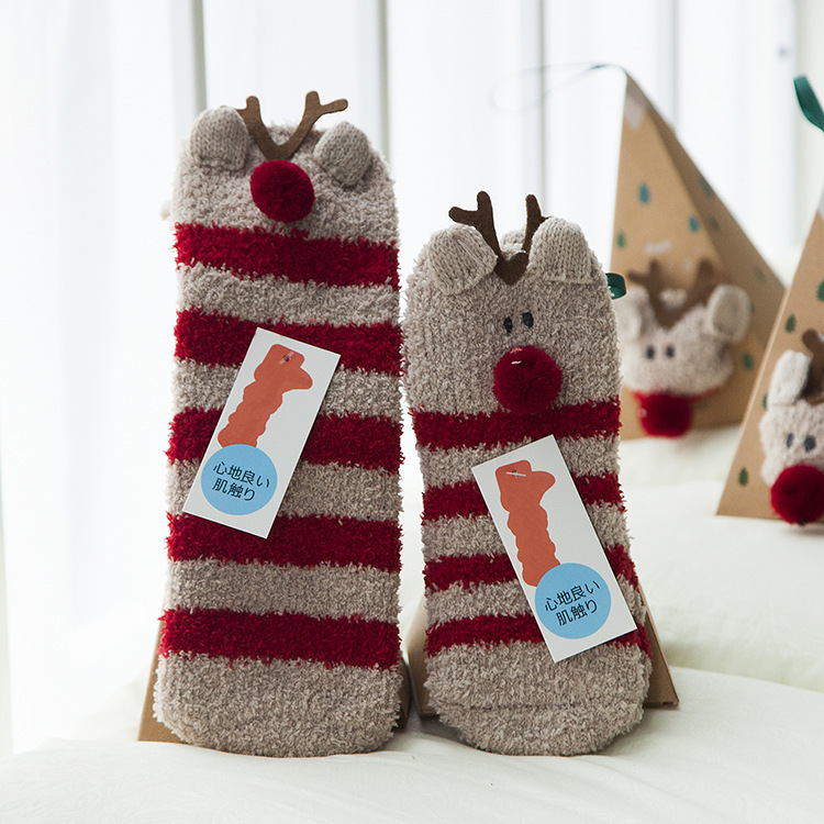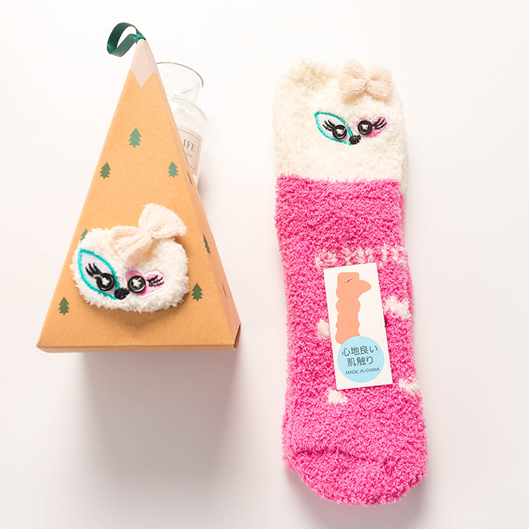 수 놓은 산호 양털 크리스마스 양말 숙녀 바닥 양말 만화 테리 수면 양말 반 벨벳 홈 양말 도매