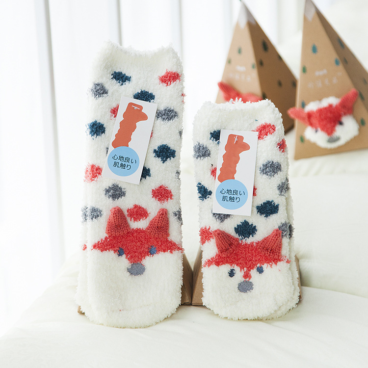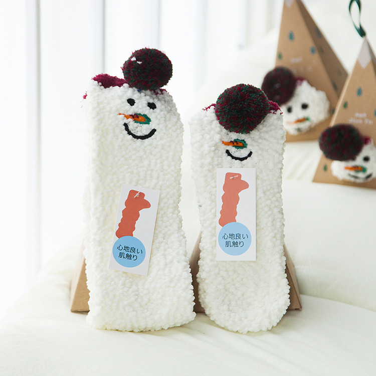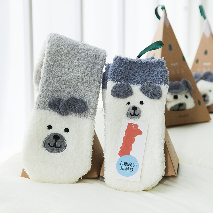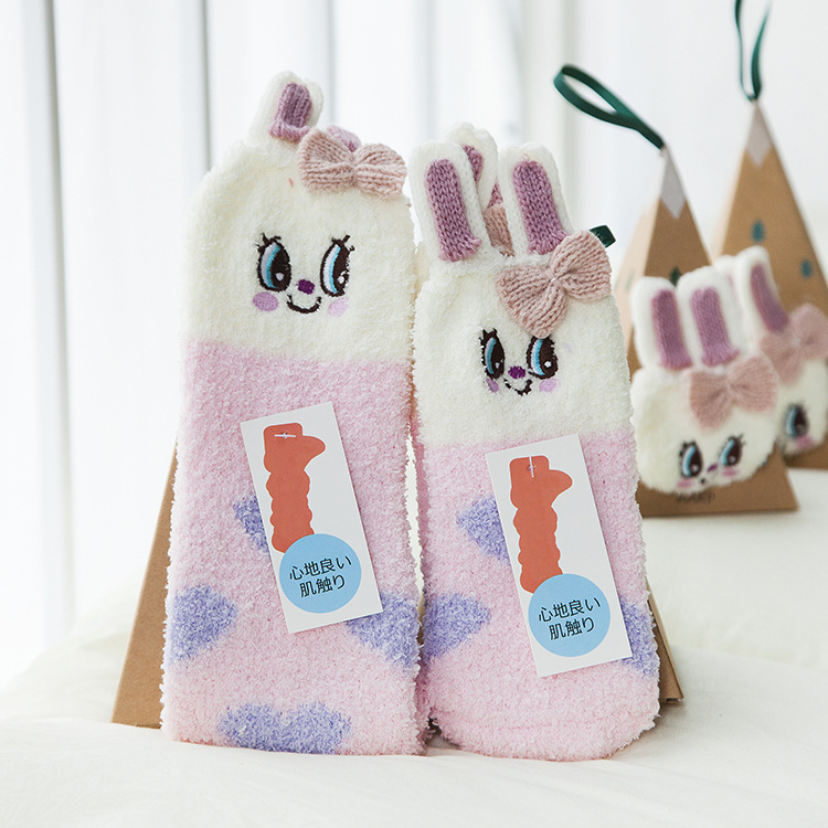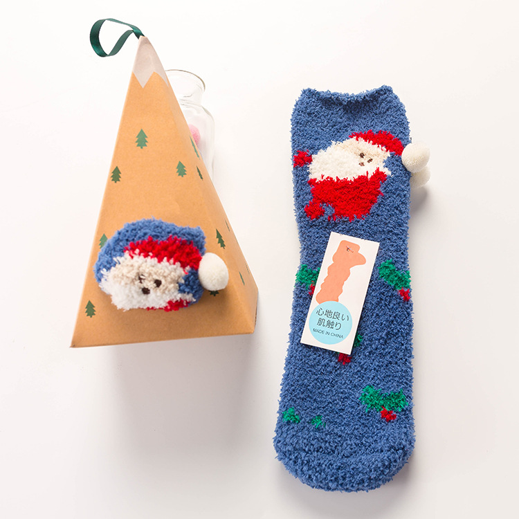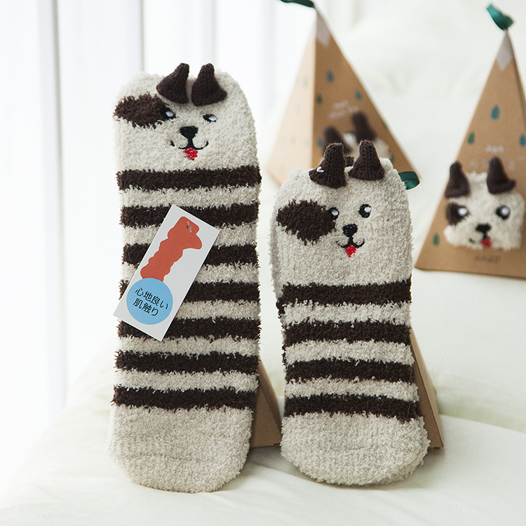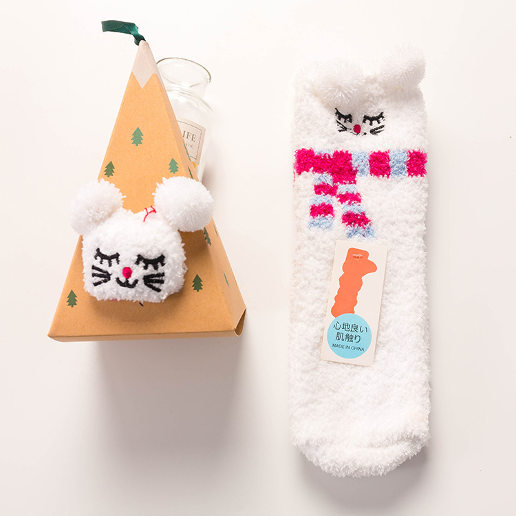 수 놓은 산호 양털 크리스마스 양말 숙녀 바닥 양말 만화 테리 수면 양말 반 벨벳 홈 양말 도매