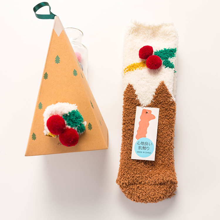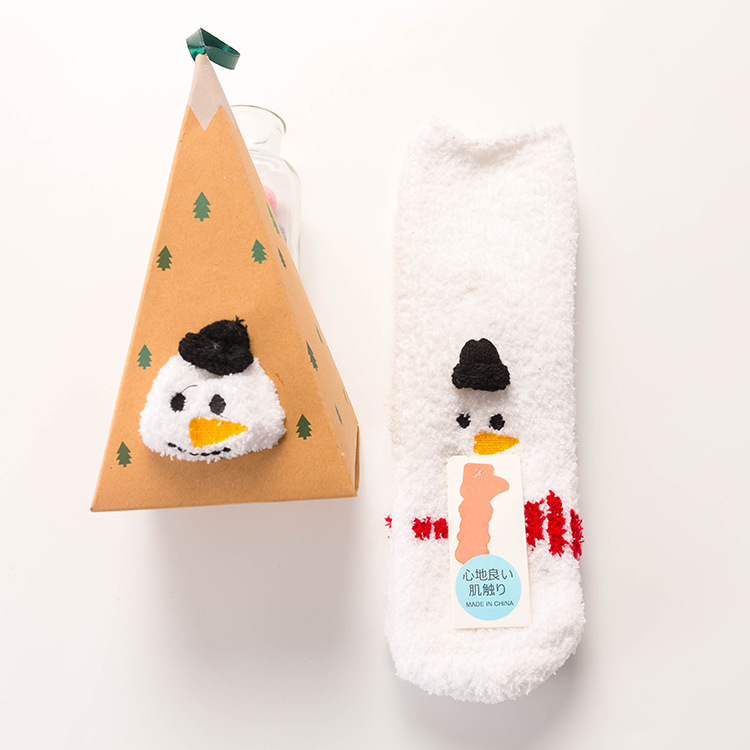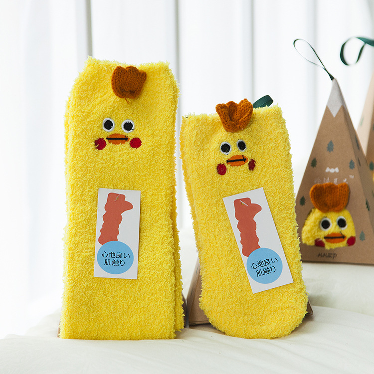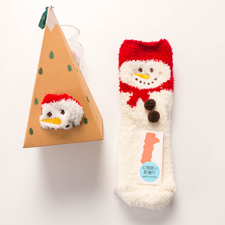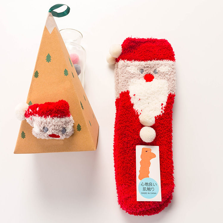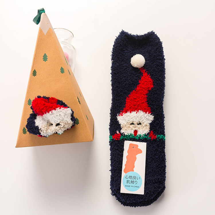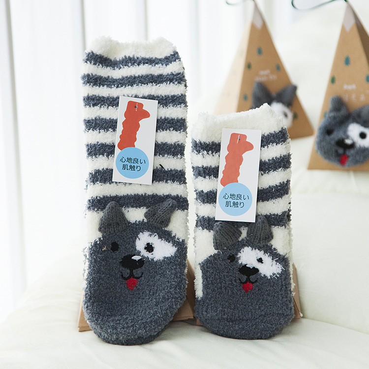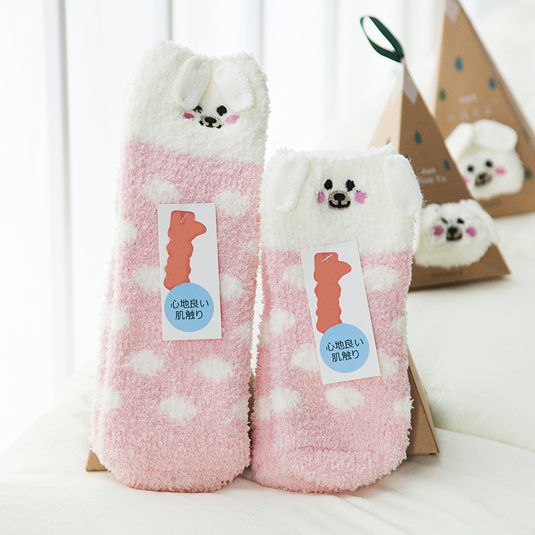 수 놓은 산호 양털 크리스마스 양말 숙녀 바닥 양말 만화 테리 수면 양말 반 벨벳 홈 양말 도매