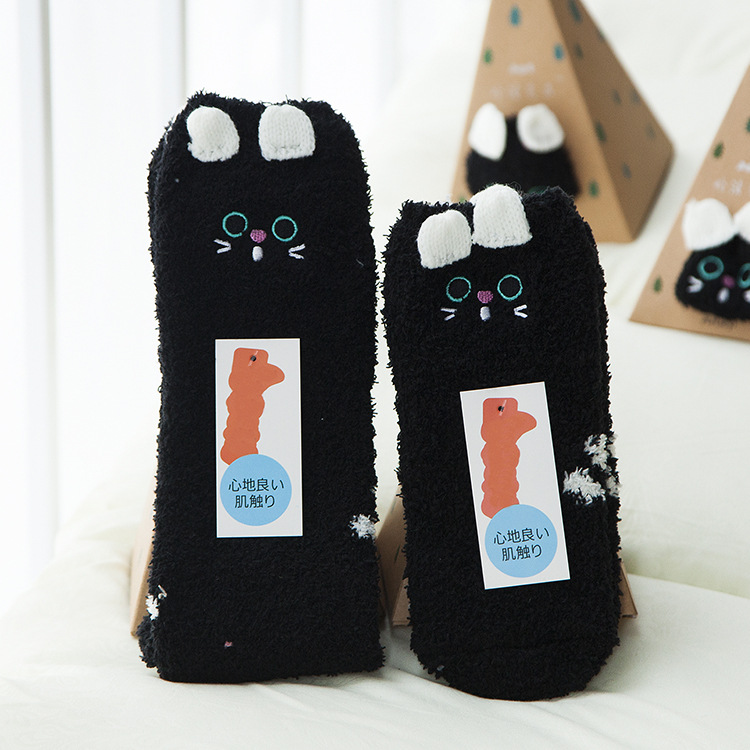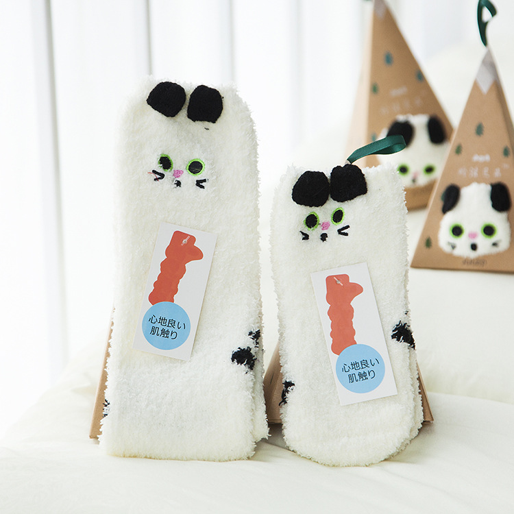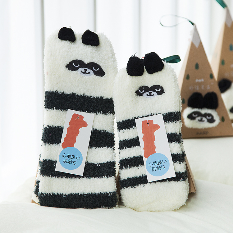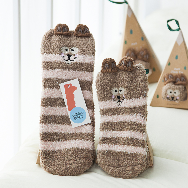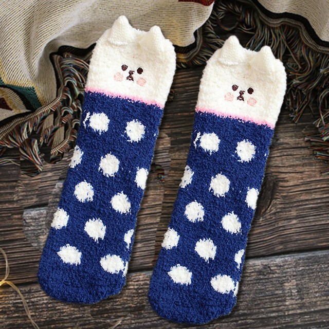 수 놓은 산호 양털 크리스마스 양말 숙녀 바닥 양말 만화 테리 수면 양말 반 벨벳 홈 양말 도매스토어 가기