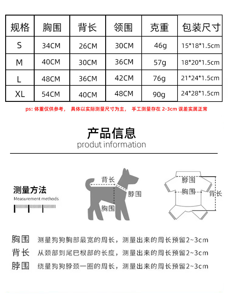• S (가슴 둘레 34cm, 등 길이 26cm)