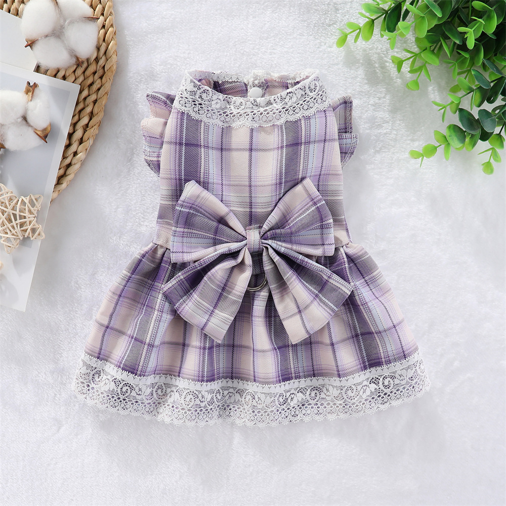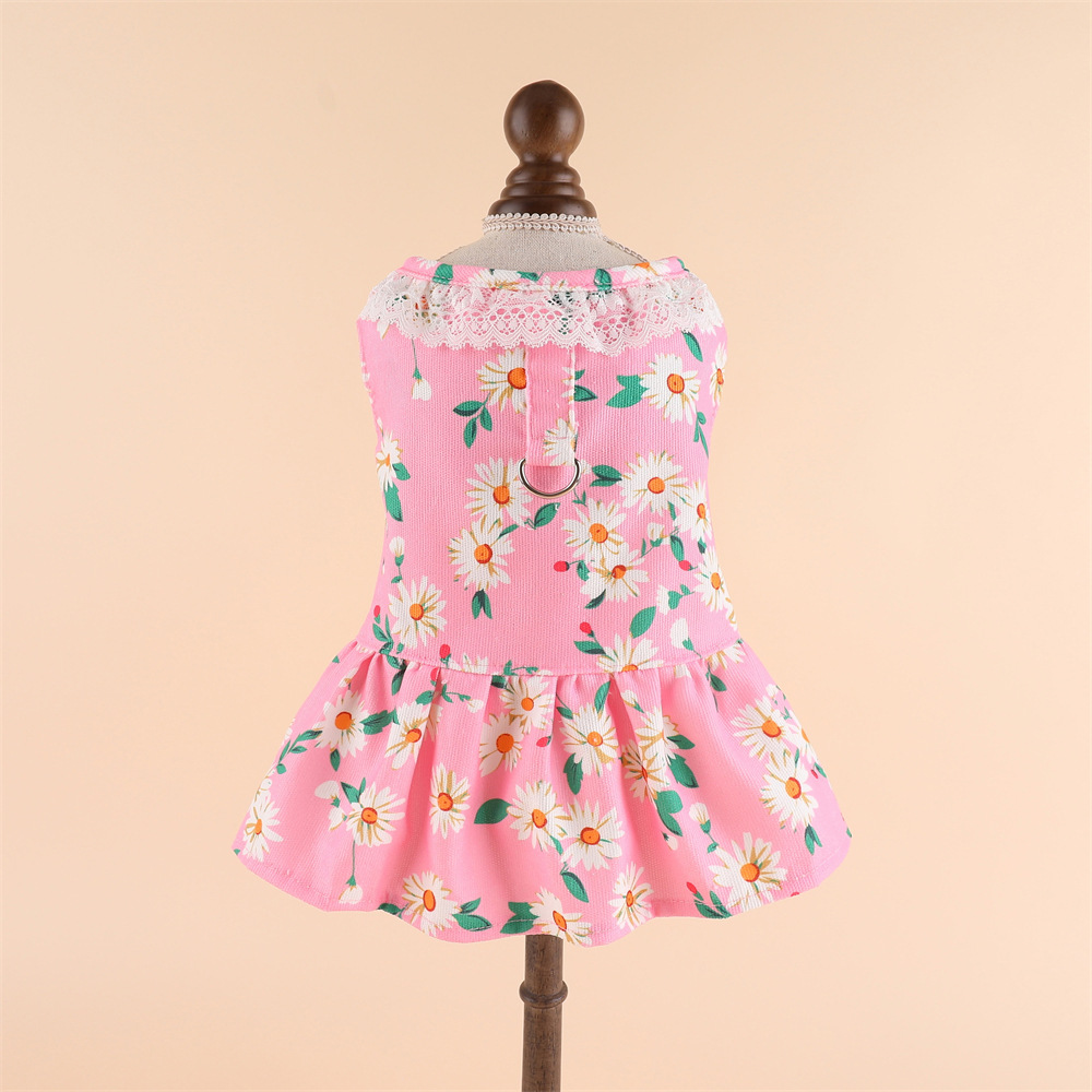 애완 동물 개 옷 봄 옷 견인 로프와 봄 여름 얇은 스커트 작은 개 고양이 테디 쓴 곰