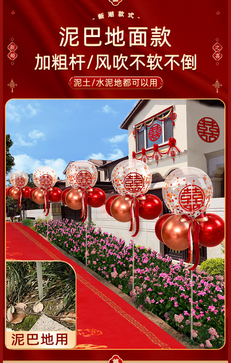 도매 웨딩 룸 가이드 도로 결혼식 환영 레이아웃 풍선 시골 길가 장식 도로 가이드 칼럼 브래킷 야외 빨강