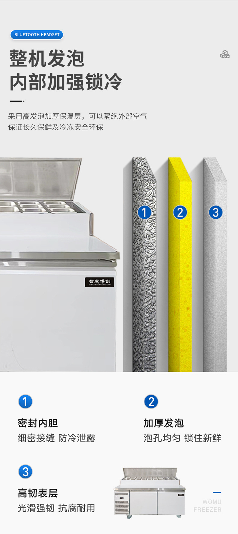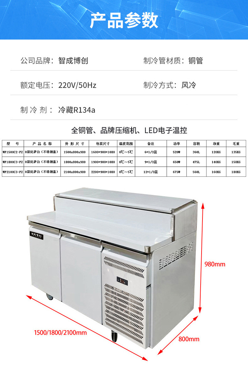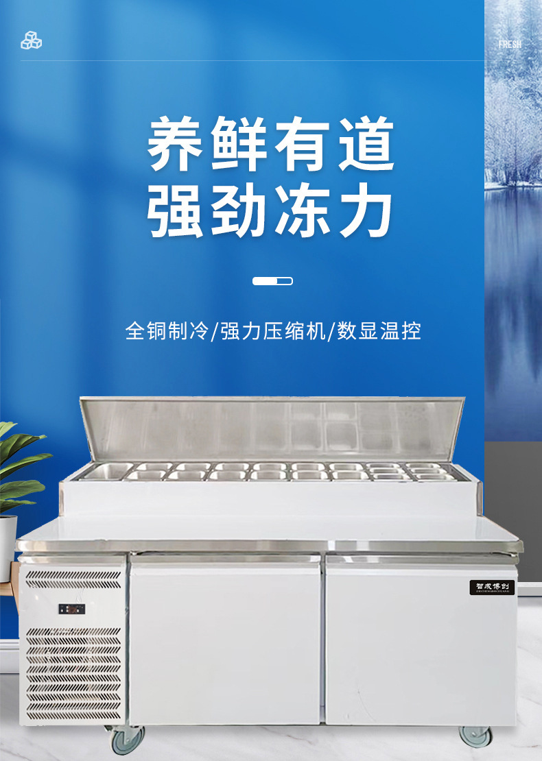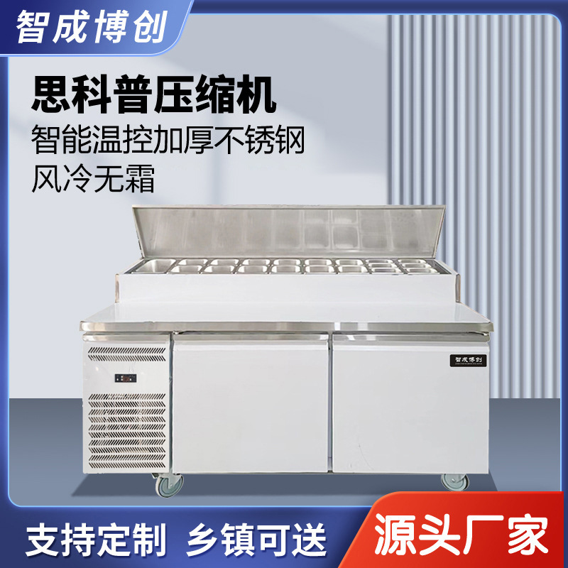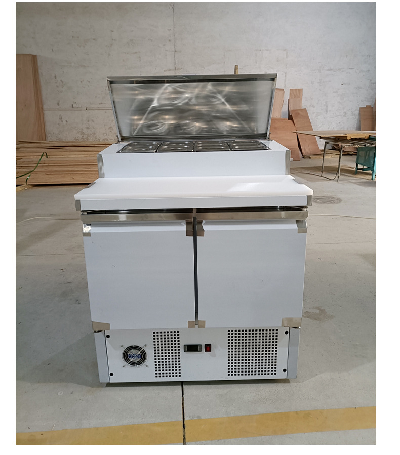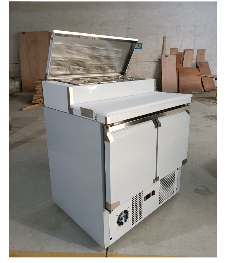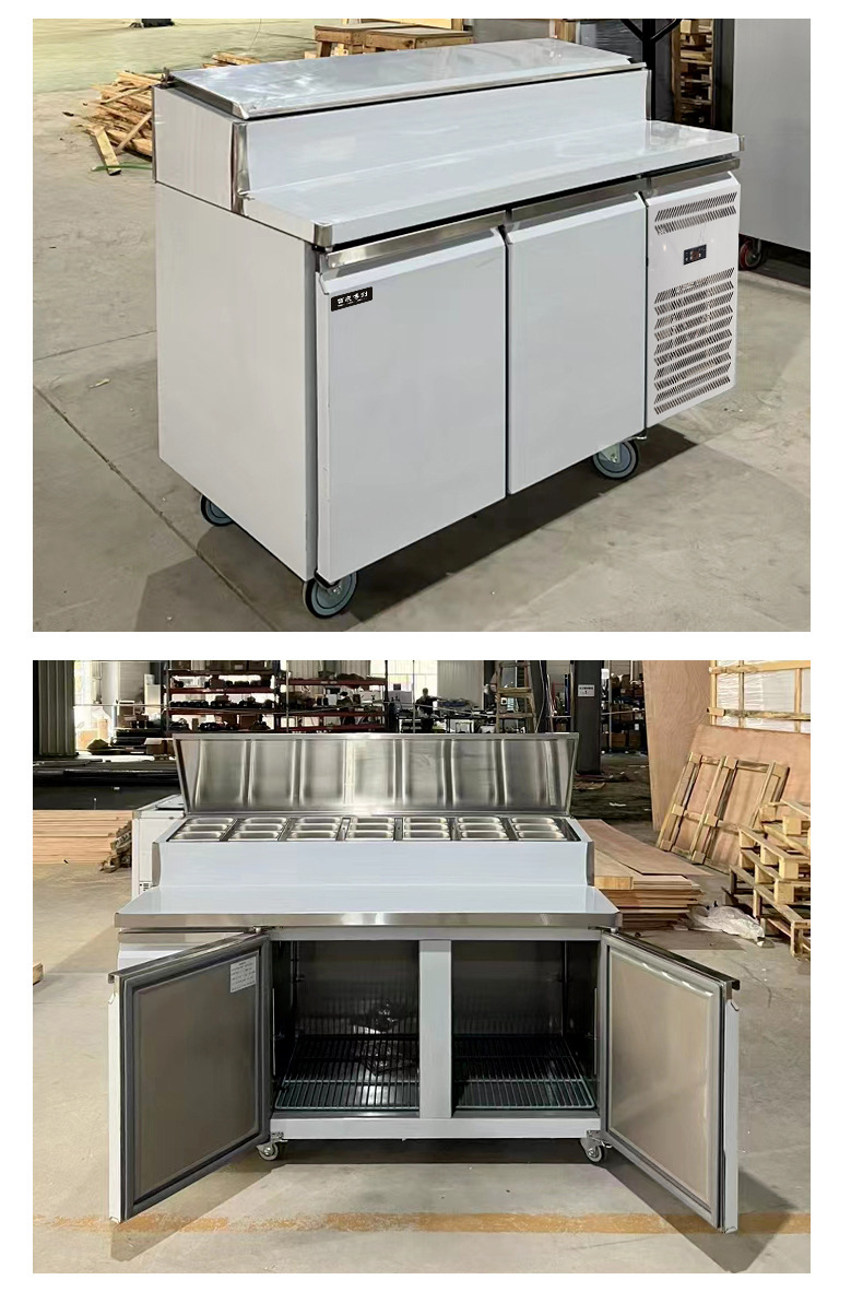 상업용 공기 냉각 샐러드 피자 테이블 뿌리기 샌드위치 냉장 작업대 상업용 스테인레스 스틸 냉동고 샐러드 캐비닛스토어 가기