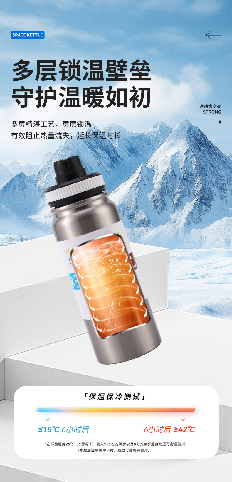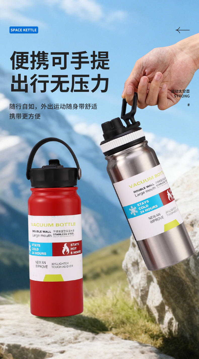 멀티 뚜껑 휴대용 스테인레스 스틸 보온병 야외 스포츠 주전자 여행 등산 대용량 휴대용 공간 냄비