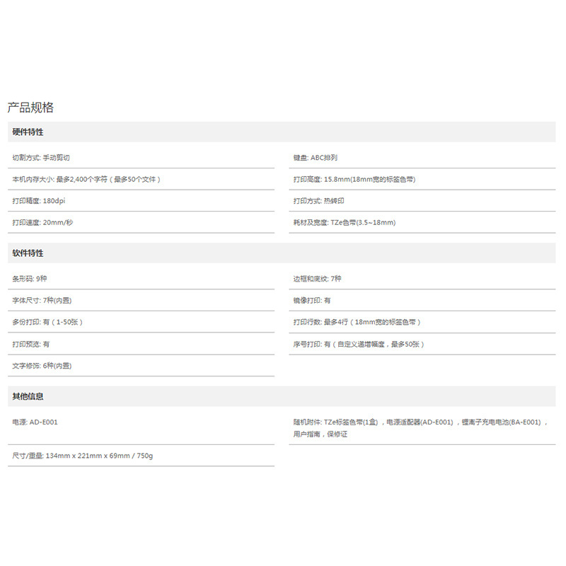 형제 라벨 기계 PT-E300 휴대용 전문 라벨 프린터 6 ~ 18mmTZ 소모품