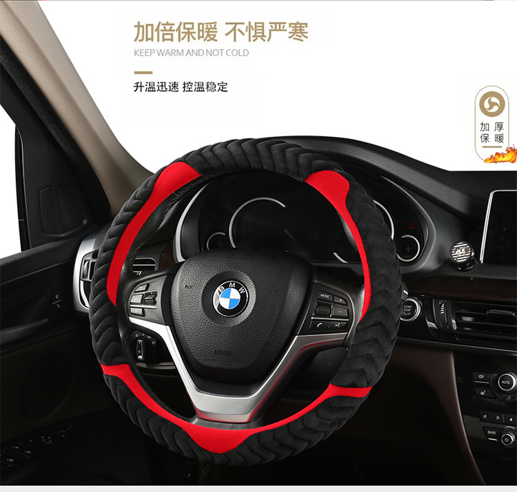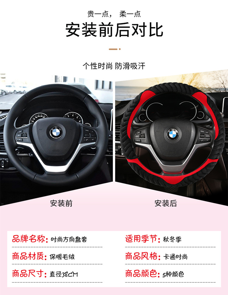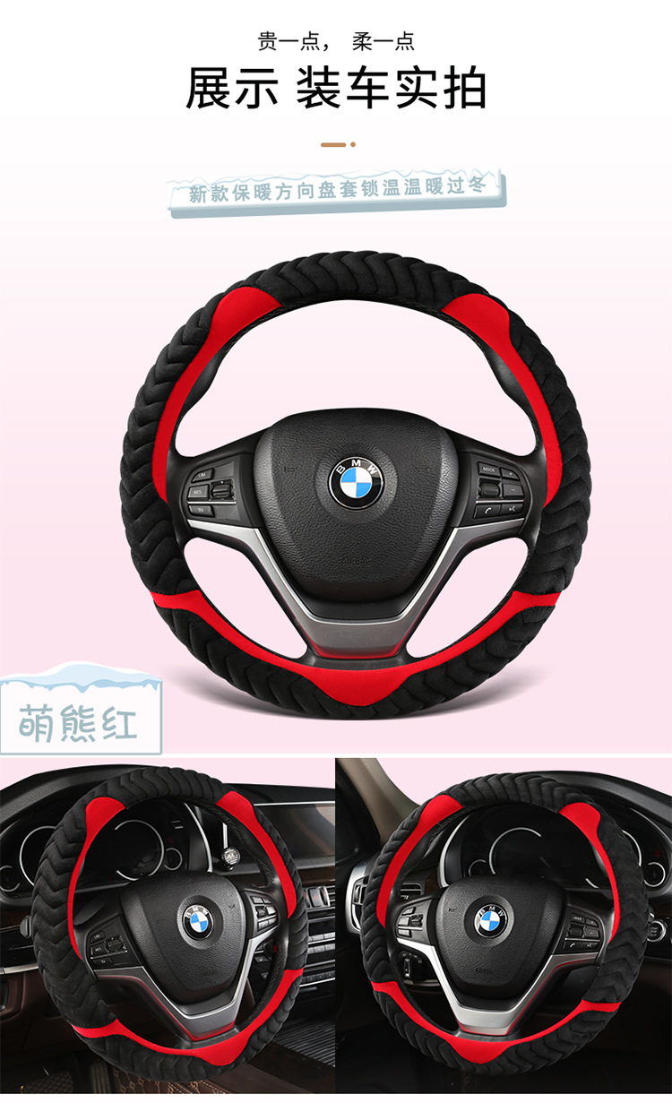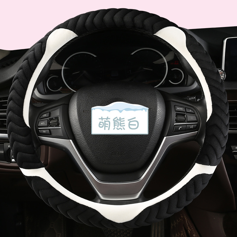 새로운 짧은 플러시 스티어링 휠 커버 자동차 4 계절 유니버설 커버 미끄럼 방지 내마모성 손 수 놓은 핸들 커버 크로스 보더 독점스토어 가기