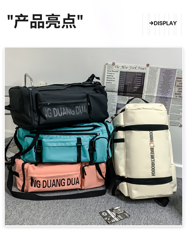여성용 드라이/웻 분리 수납 기능이 있는 백팩, 남성용 아웃도어 스포츠 등산 여행 가방, 레터링 트렌디 백팩, 캐주얼 여행스토어 가기