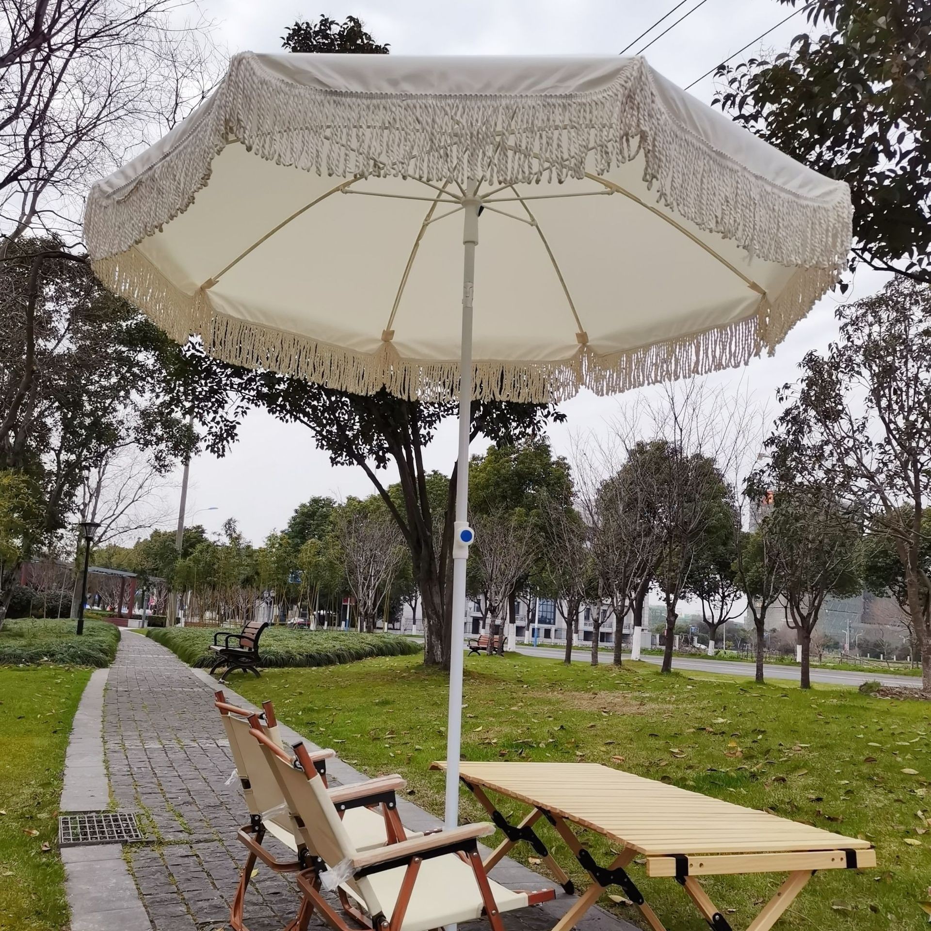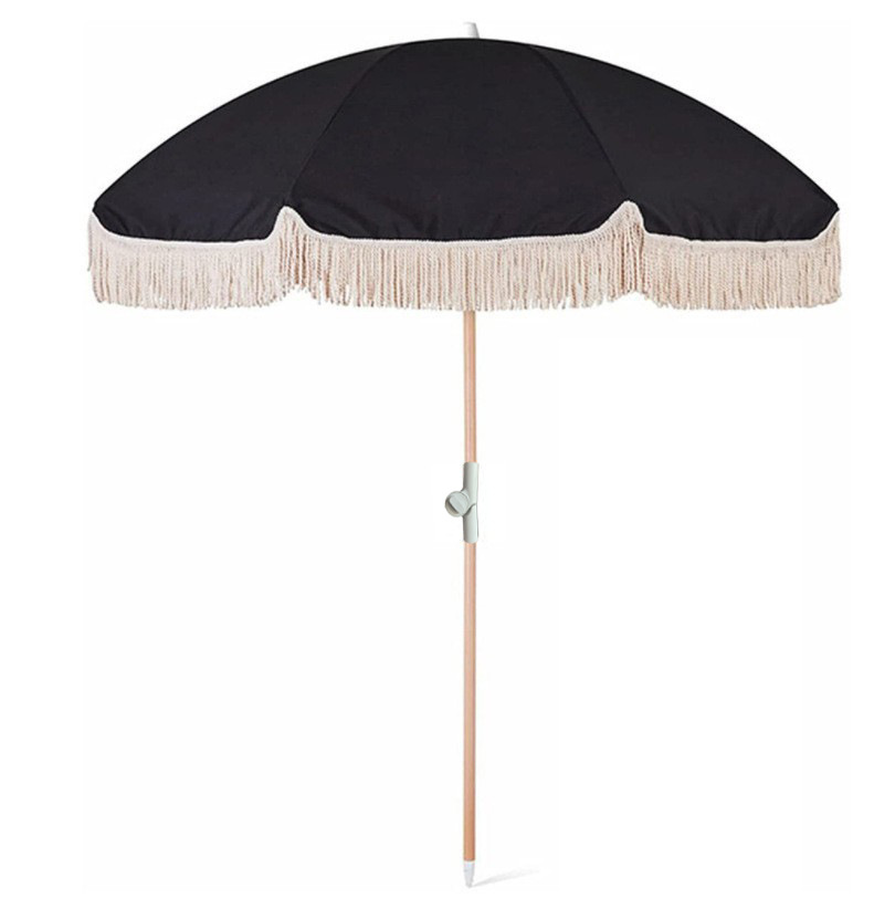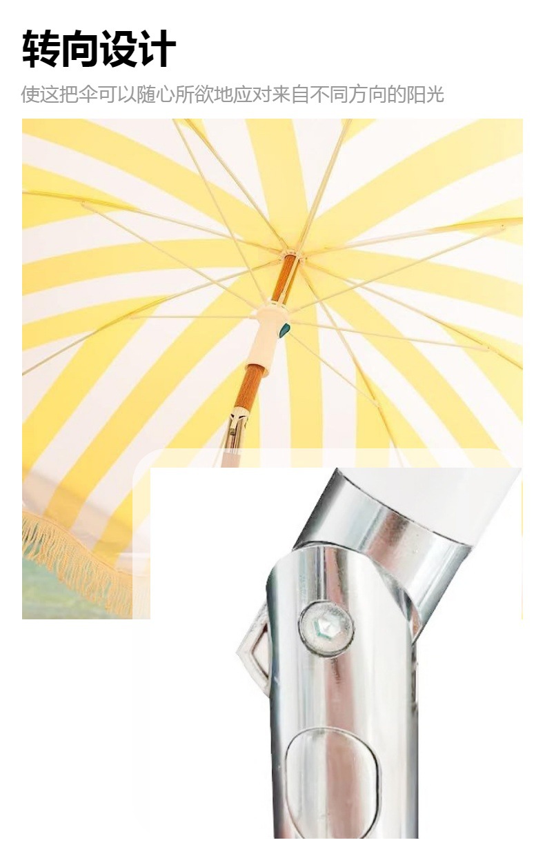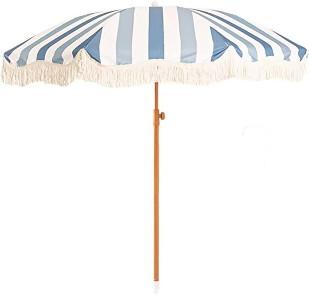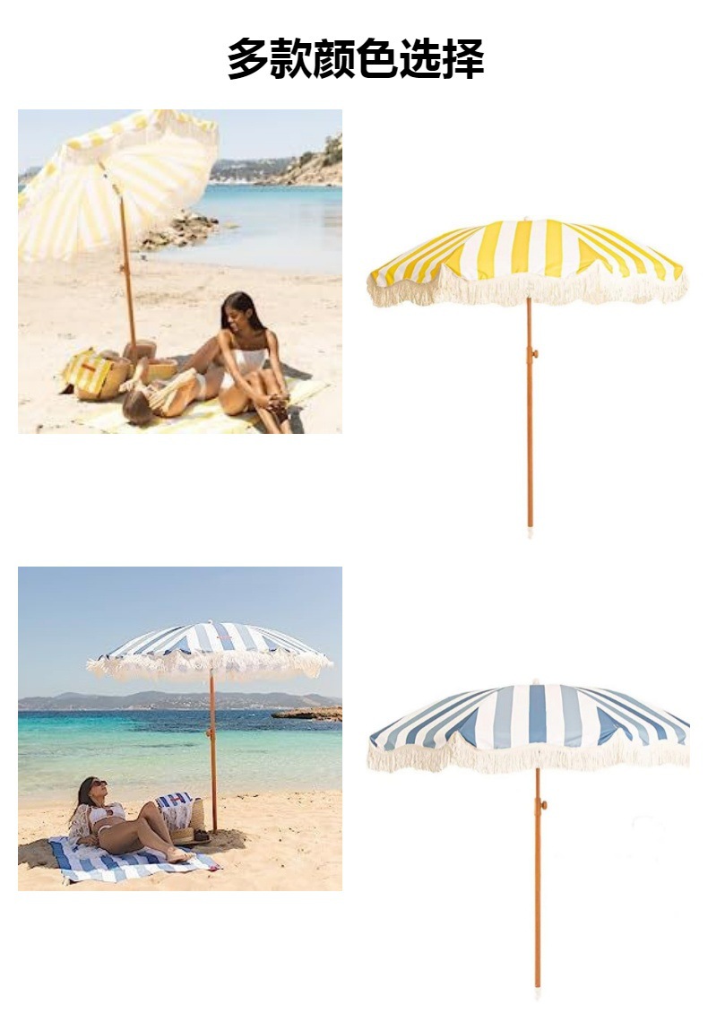 국경을 넘어 인기 있는 2m 노란색 줄무늬 우산, 태슬 장식 야외용 차양 비치 파라솔, 정원 캠핑용 태양 우산, 자외선 차단스토어 가기