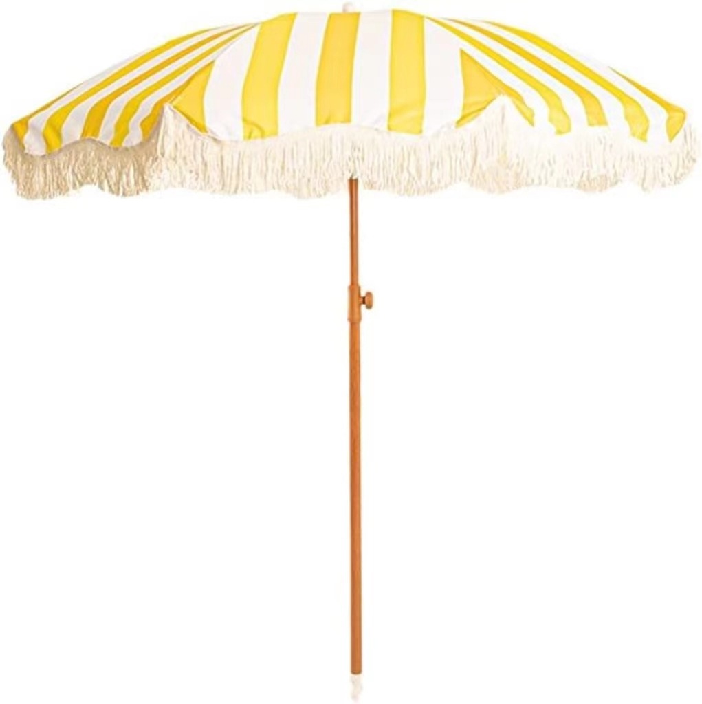 국경을 넘어 인기 있는 2m 노란색 줄무늬 우산, 태슬 장식 야외용 차양 비치 파라솔, 정원 캠핑용 태양 우산, 자외선 차단