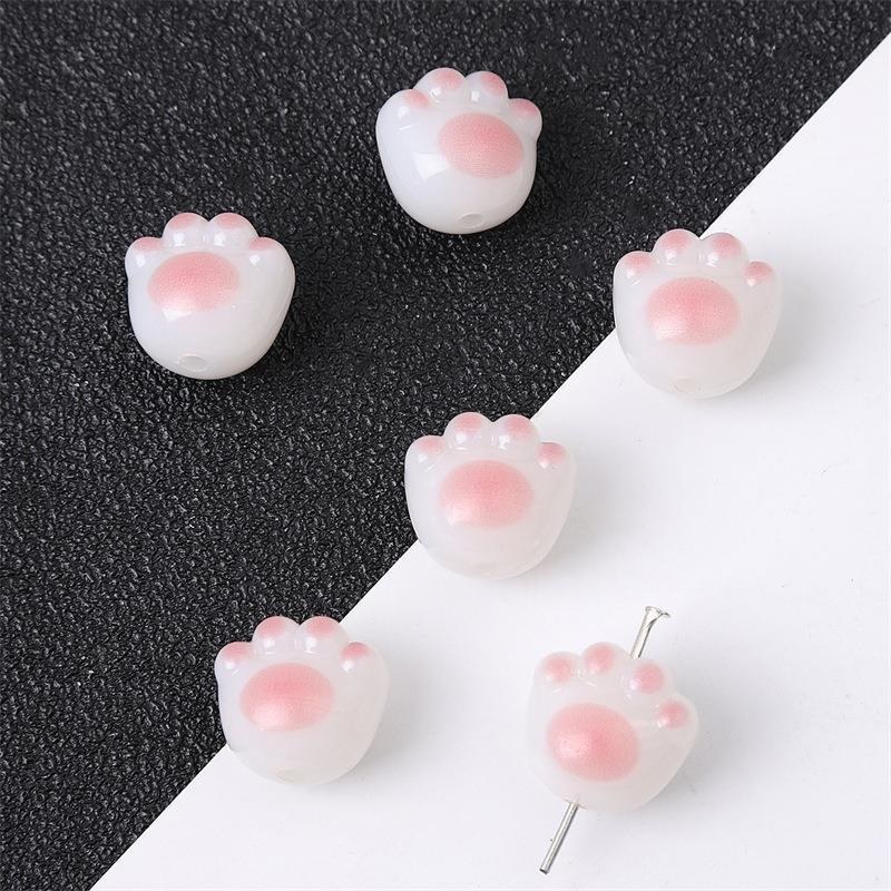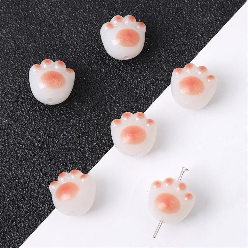 10mm 모조 화이트 옥 보리수 숯 고양이 발톱 아크릴 아기 곰 발 구슬 DIY 수제 팔찌 목걸이 재료