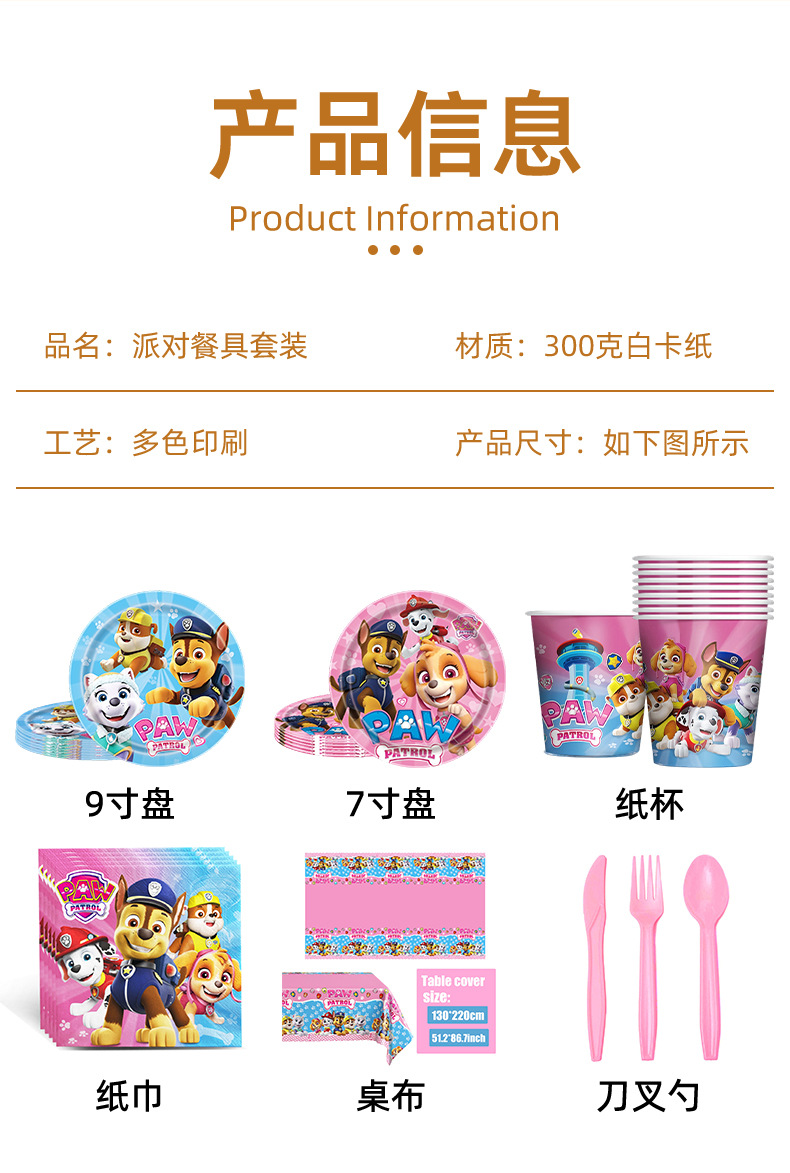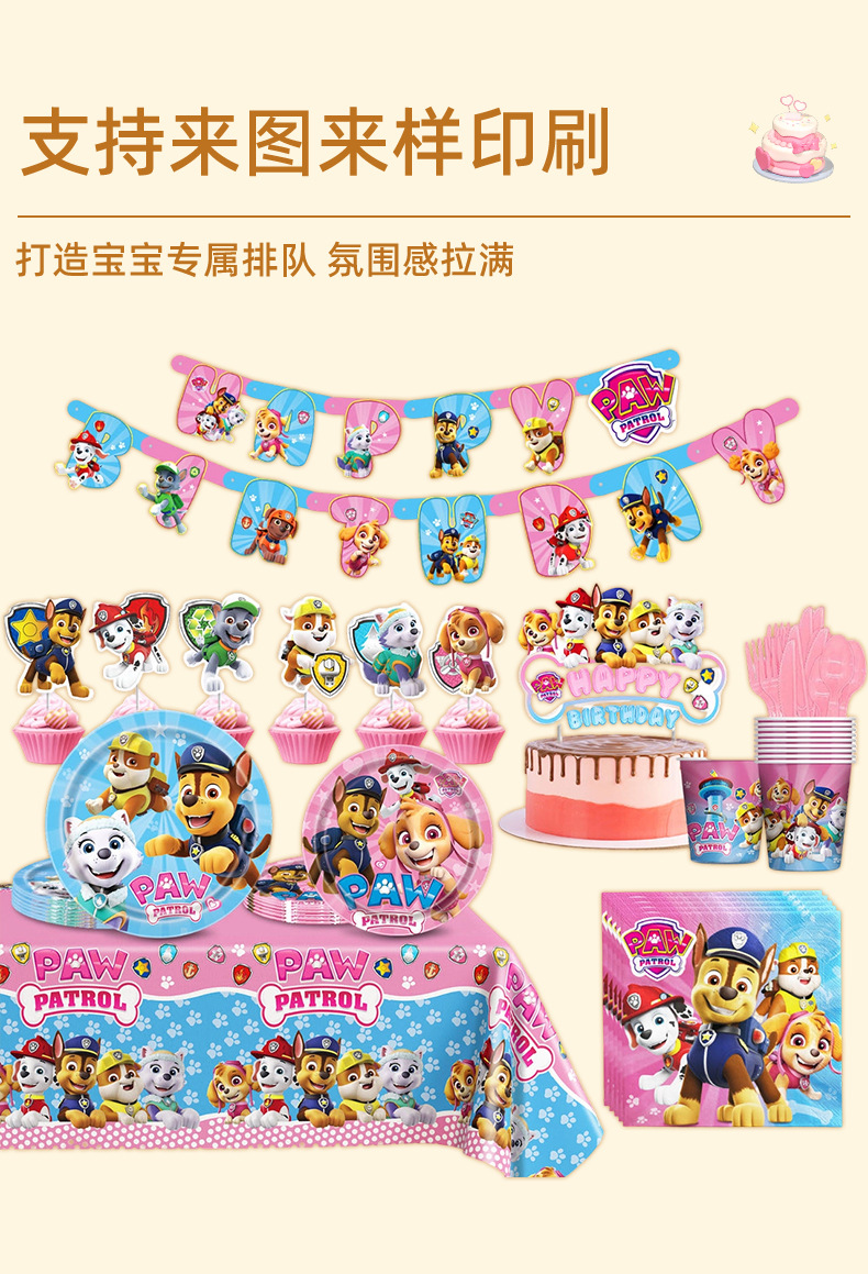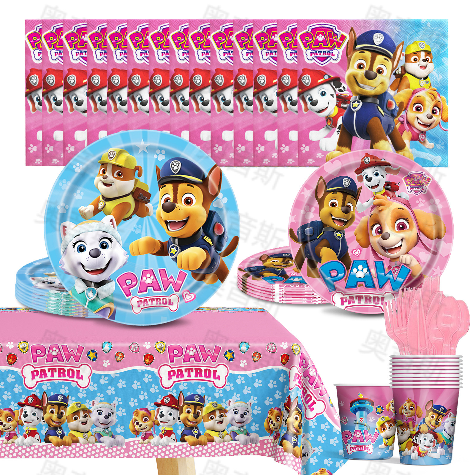 왕팀 파티 용품 개 순찰 식기 종이 접시 종이컵 식탁보 풀기 풍선 장식 케이크 삽입스토어 가기