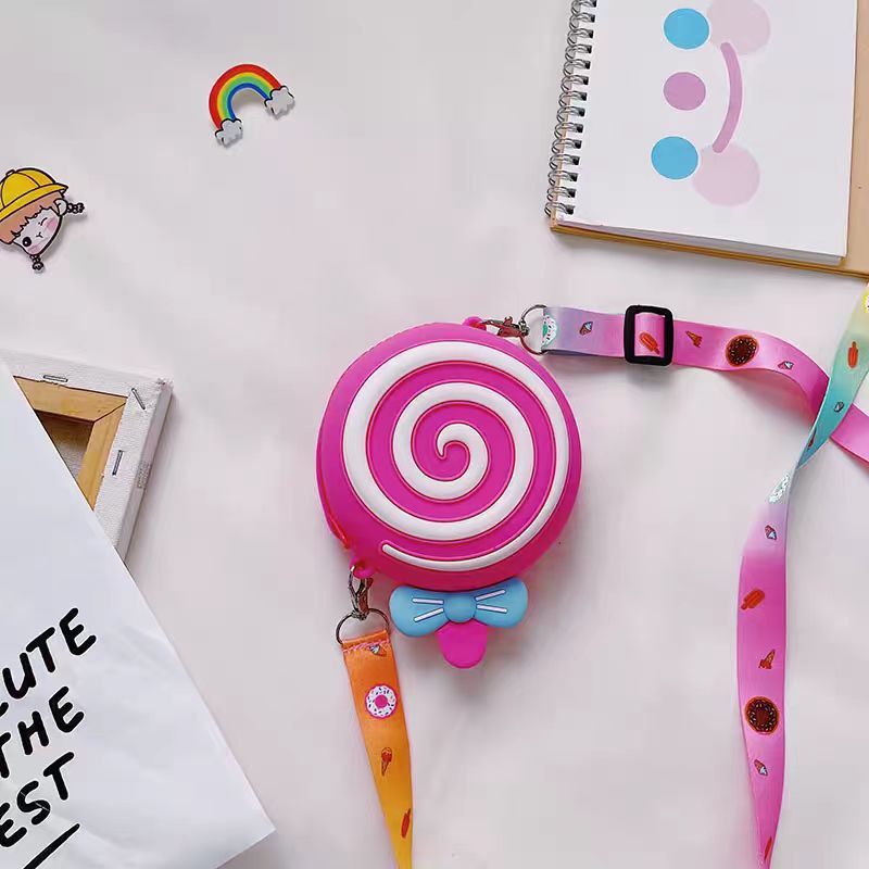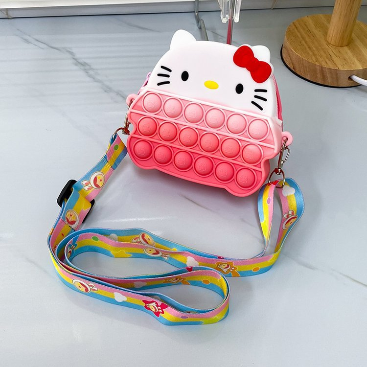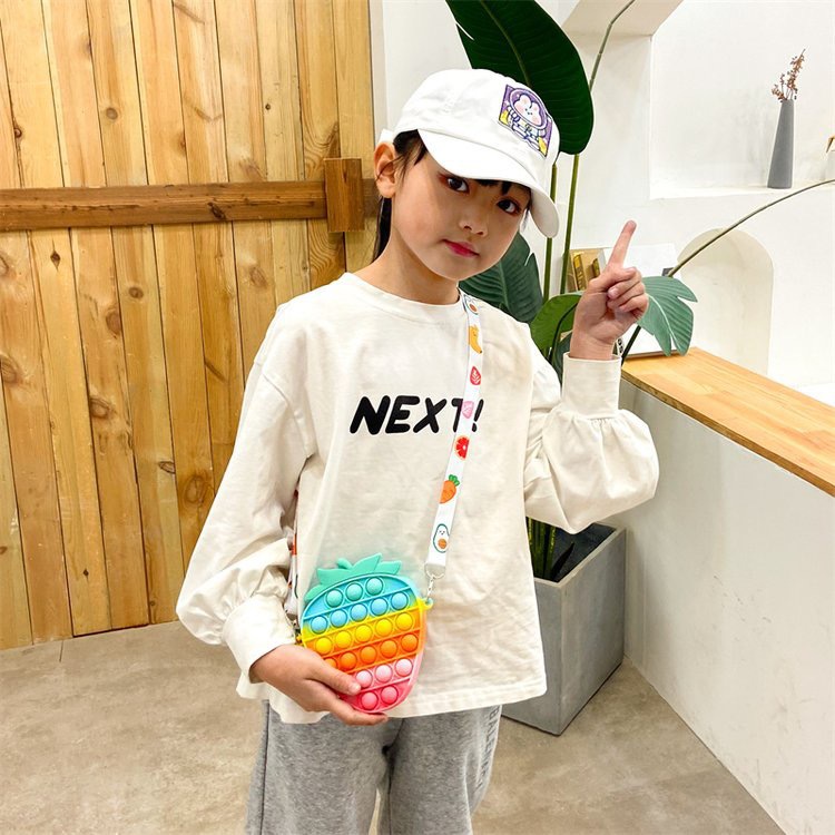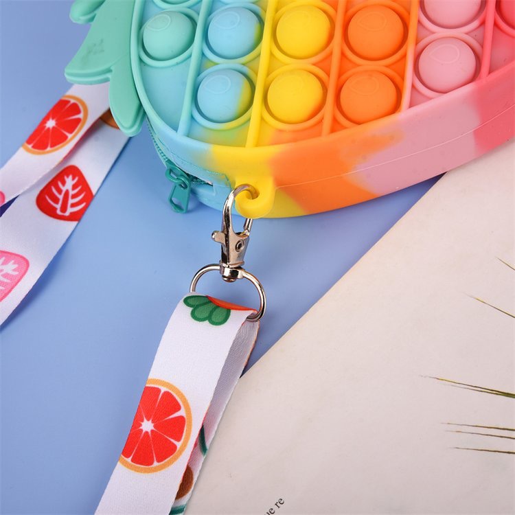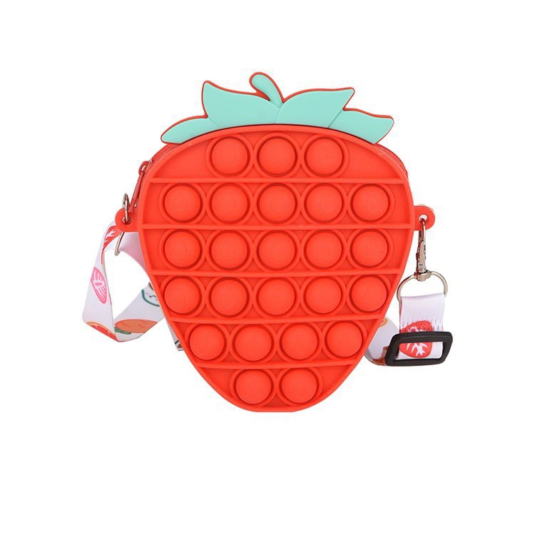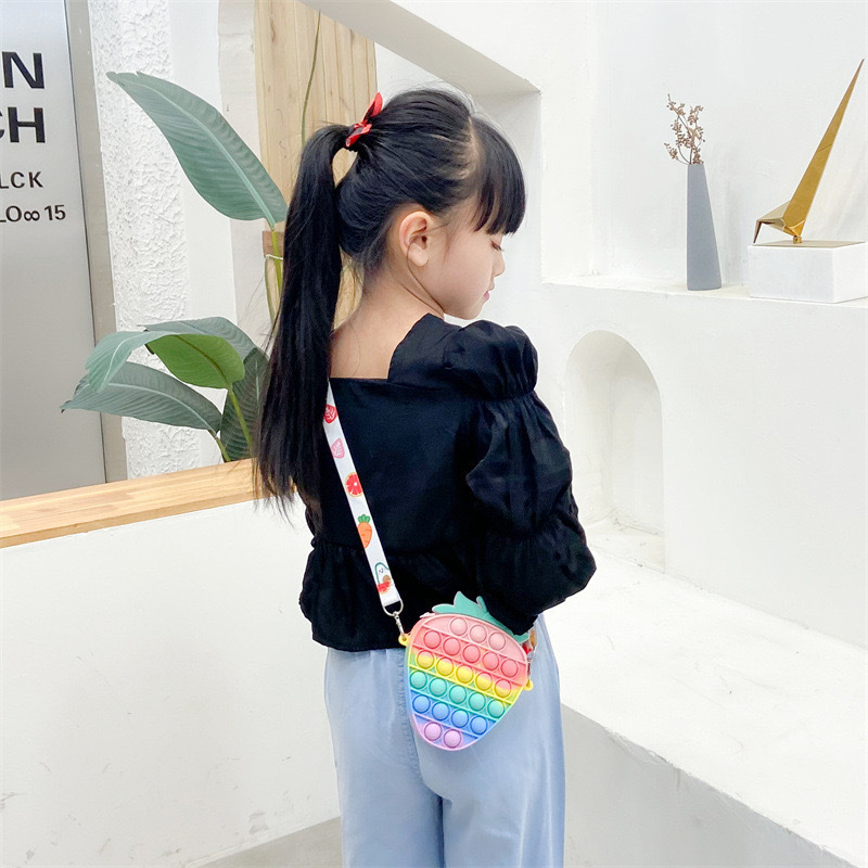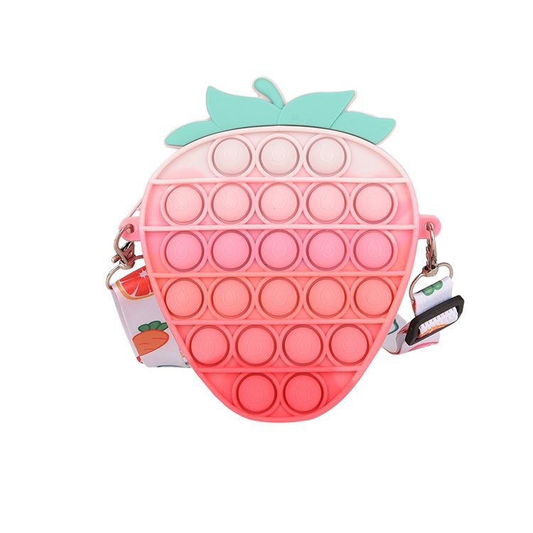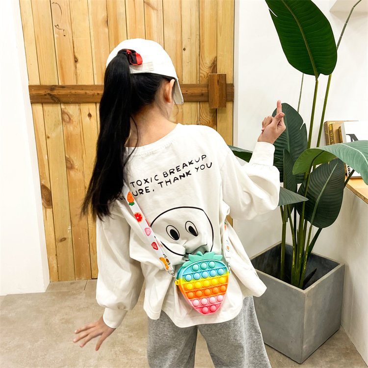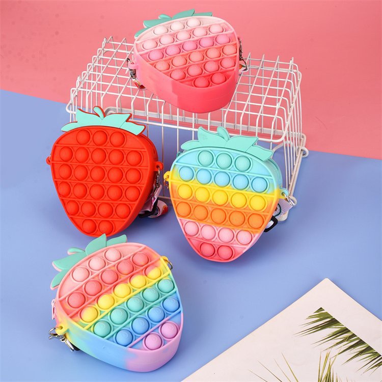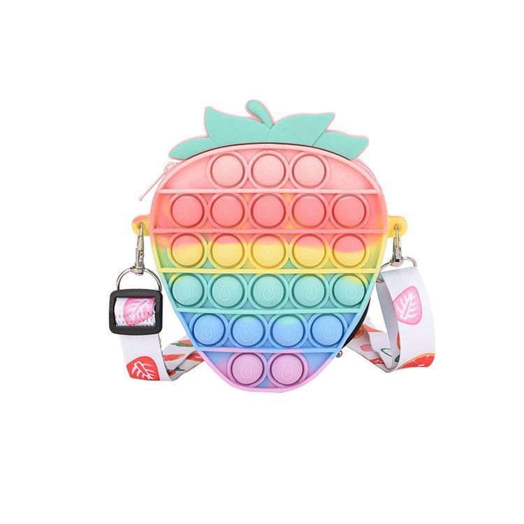 새로운 어린이 동전 지갑 만화 실리콘 가방 딸기 가방 귀여운 무지개 크로스 바디 가방 지갑 여성용 미니 가방