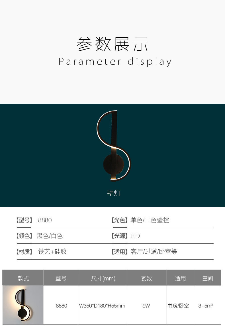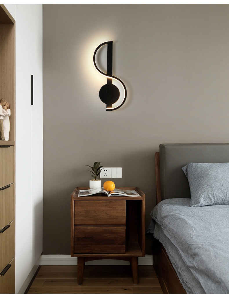 창조적 인 거실 LED 벽 램프 북유럽 창조적 인 침실 장식 야간 조명 모델 룸 실내 라인 노트 침대 옆 램프