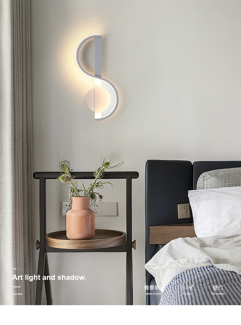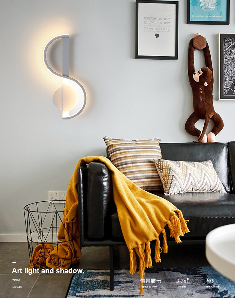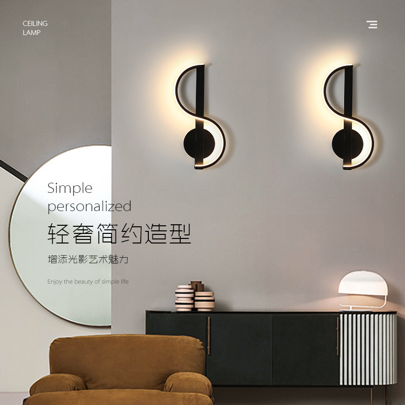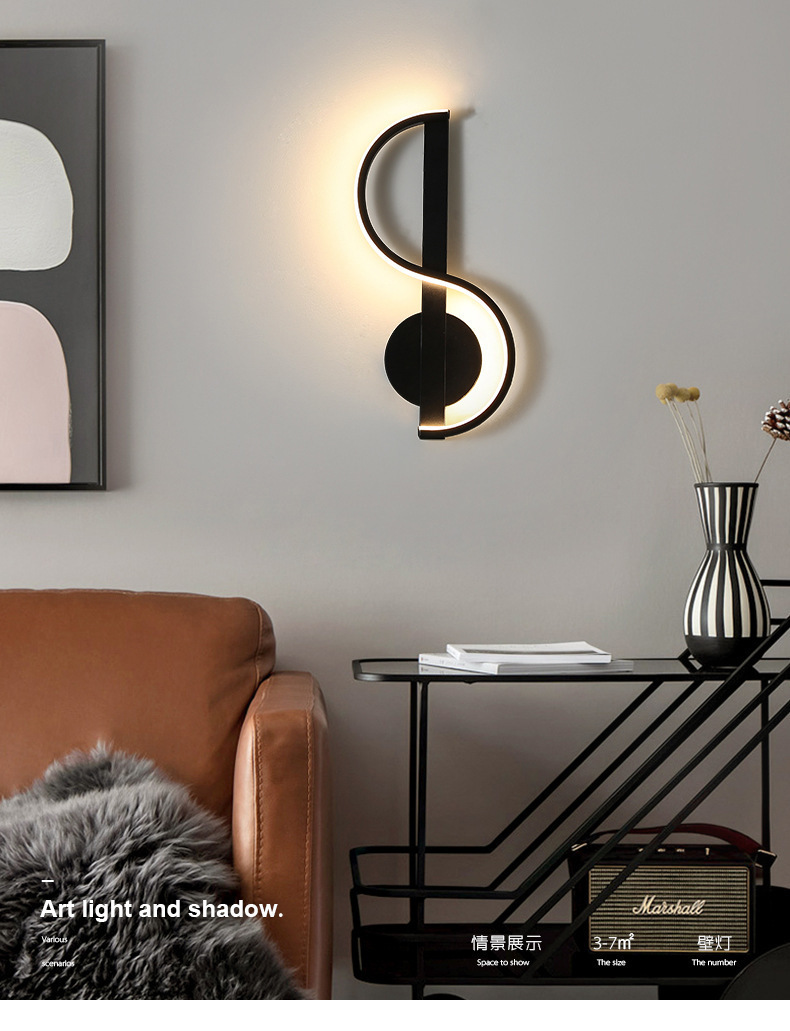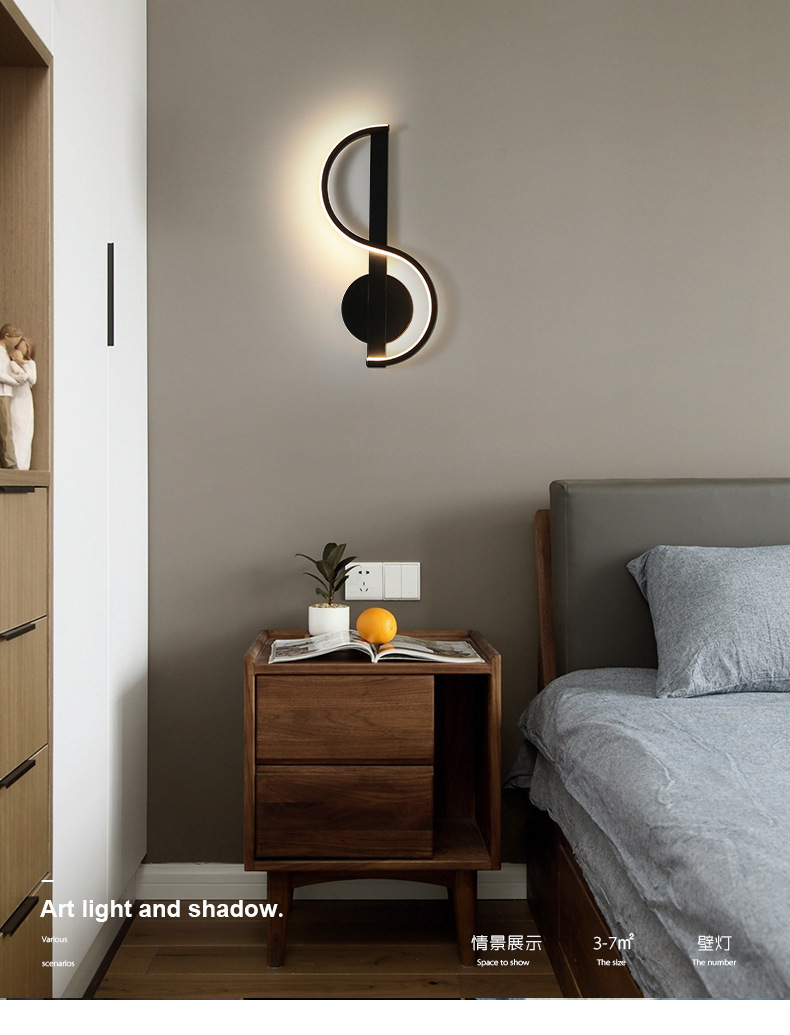 창조적 인 거실 LED 벽 램프 북유럽 창조적 인 침실 장식 야간 조명 모델 룸 실내 라인 노트 침대 옆 램프스토어 가기