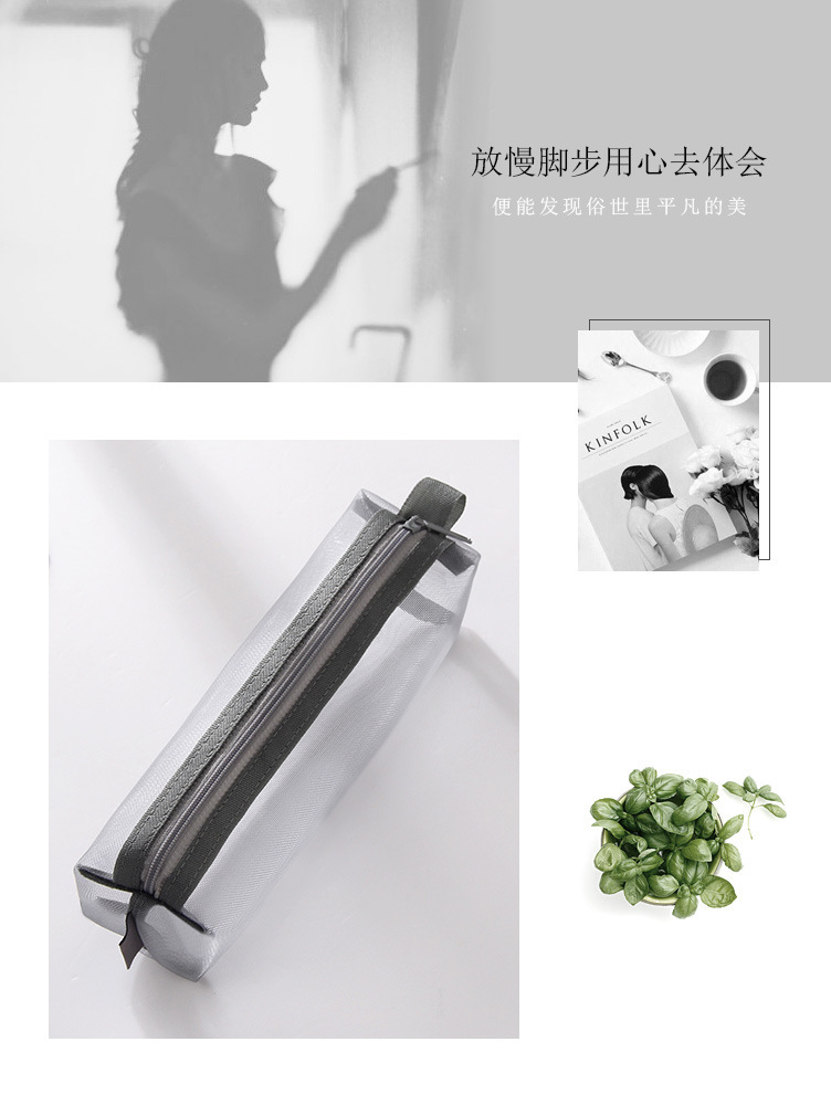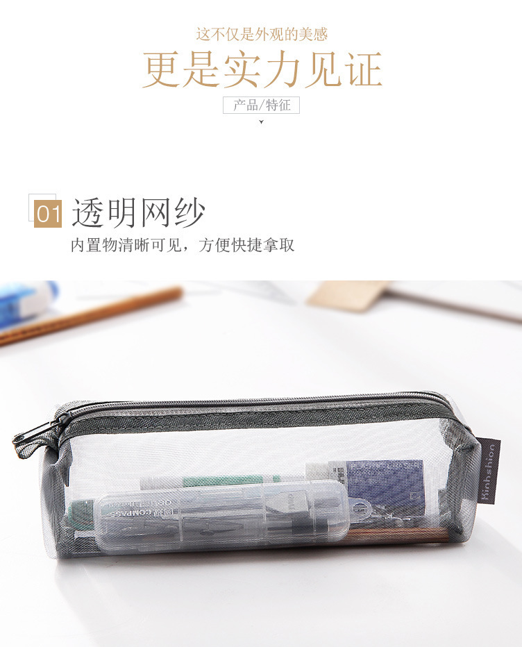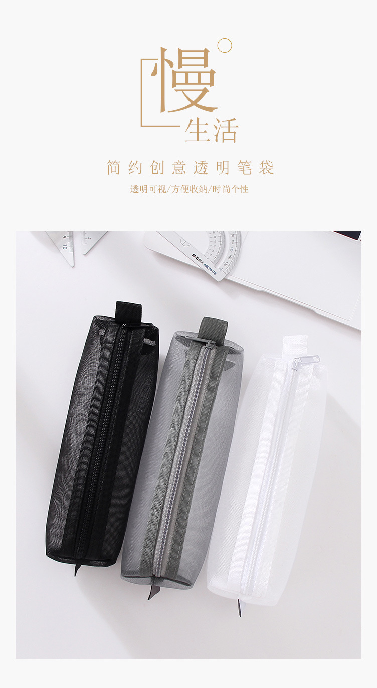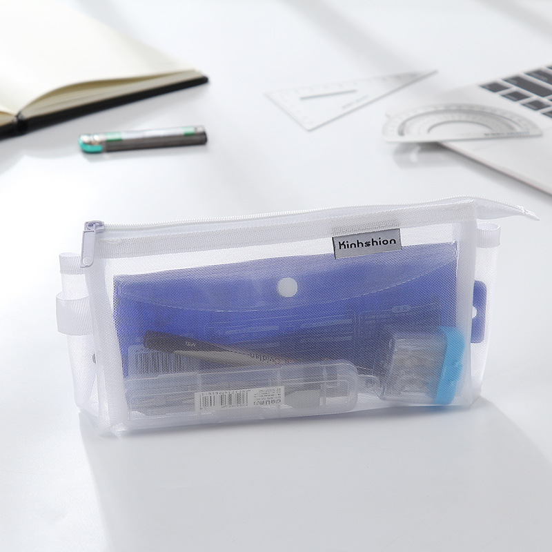 간단한 투명 메쉬 메쉬 필통 작은 신선한 테스트 대용량 문구 남성 및 여성 일반 필통