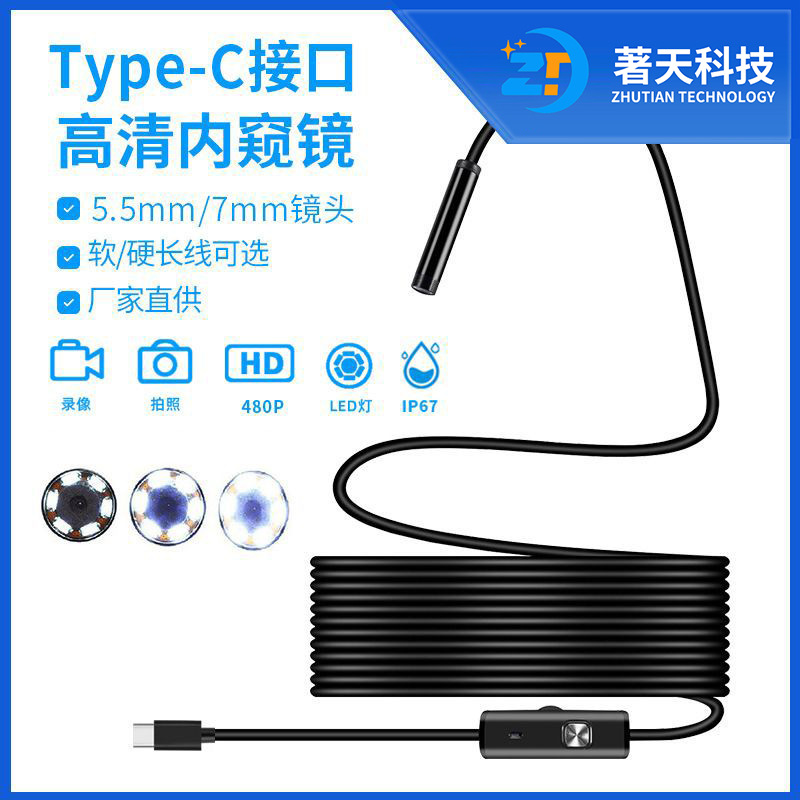 TYPE-C 안드로이드 휴대 전화 내시경 5.5/7MM 나선형 헤드 3.5m 방수 휴대 전화 내시경 산업용 내부스토어 가기