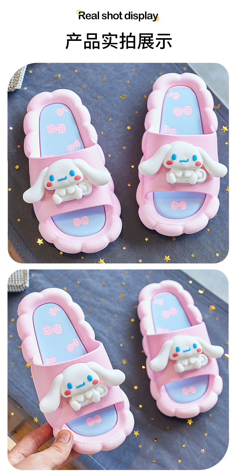 Yugui 개 어린이 슬리퍼 여름 새로운 실내 목욕 미끄럼 방지 산리오 만화 귀여운 소녀 겉옷 비치 신발스토어 가기