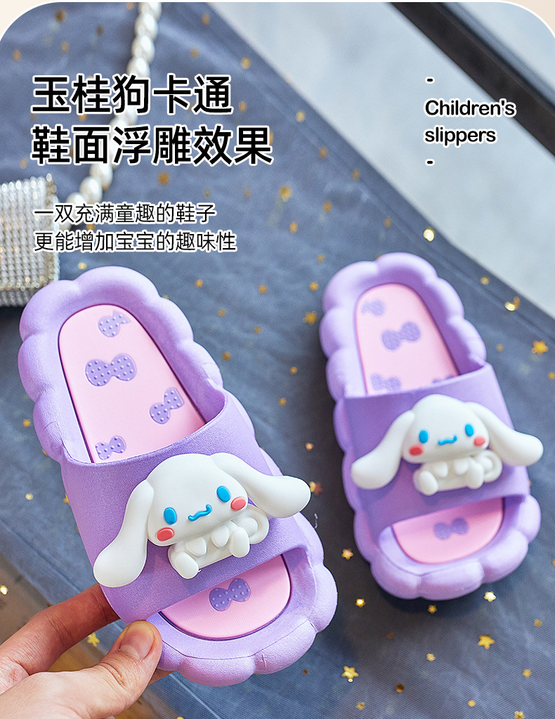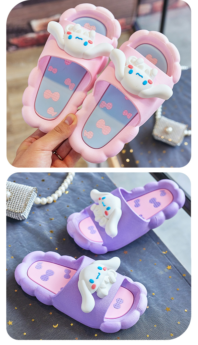 Yugui 개 어린이 슬리퍼 여름 새로운 실내 목욕 미끄럼 방지 산리오 만화 귀여운 소녀 겉옷 비치 신발