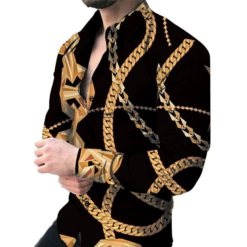 유럽과 미국의 대외 무역 남자의 새로운 캐주얼 개성 유행 남자의 긴 소매 3D 디지털 인쇄 셔츠 셔츠 크로스 보더 남성 의류스토어 가기